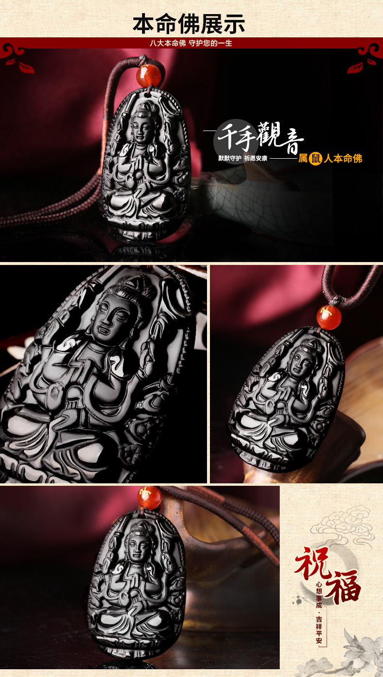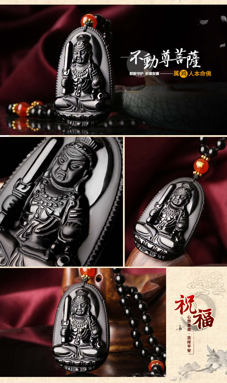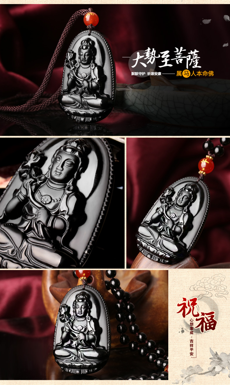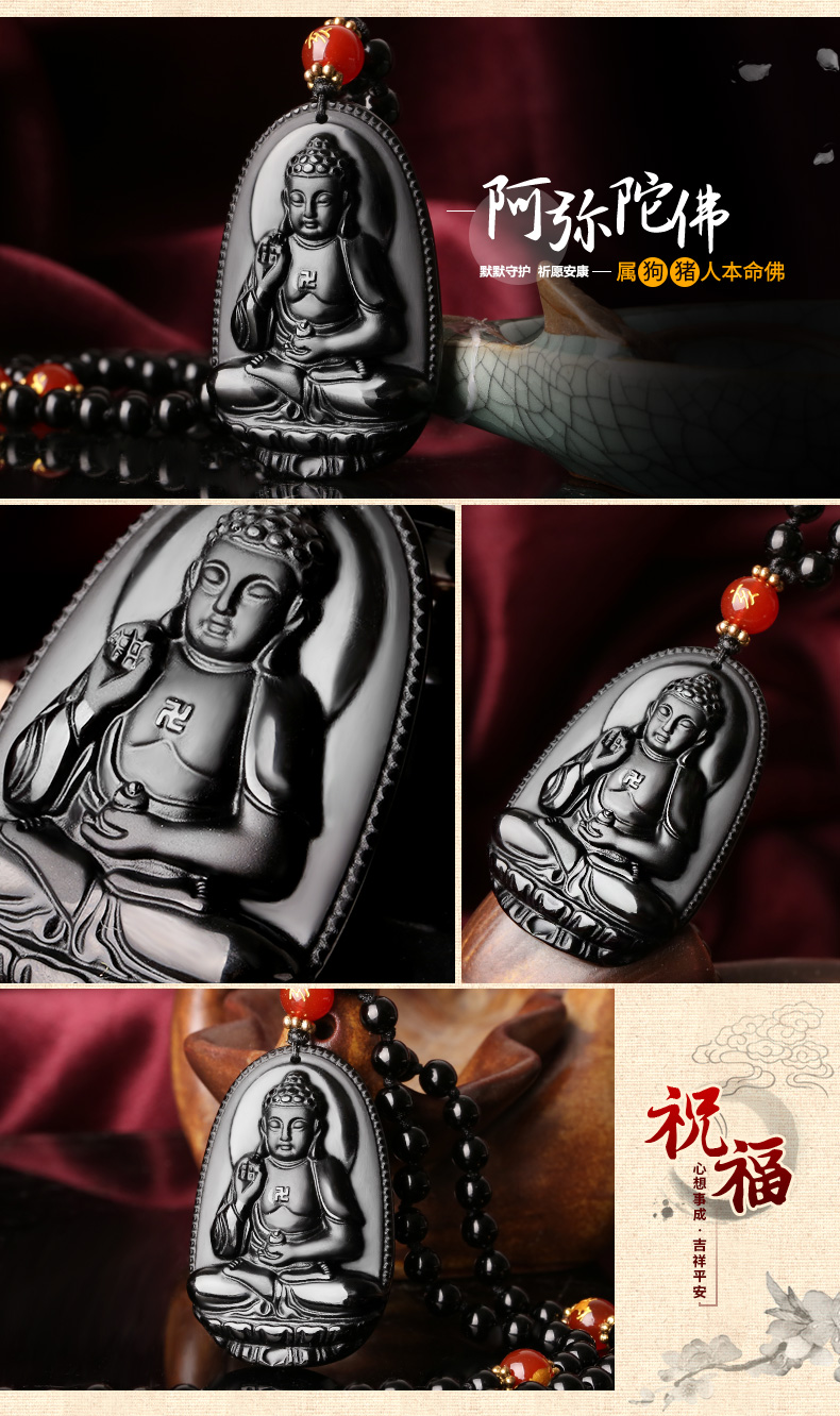 十二生肖黑曜石本命佛吊坠★属猪人本命佛阿弥陀佛★生肖三合项链★多种配绳