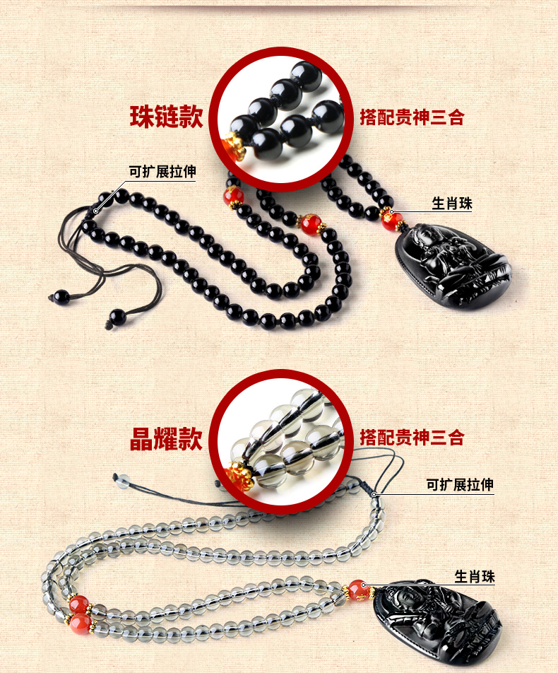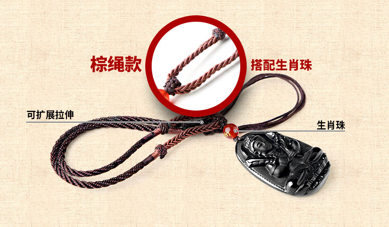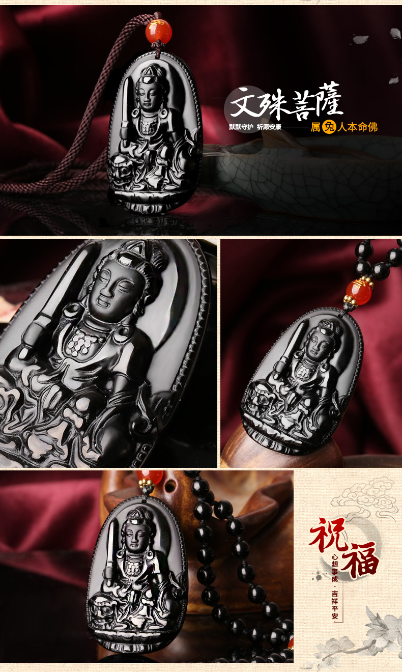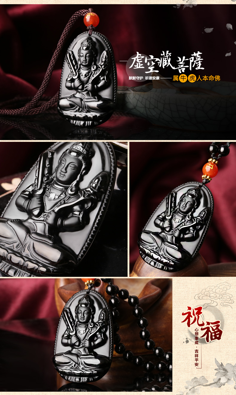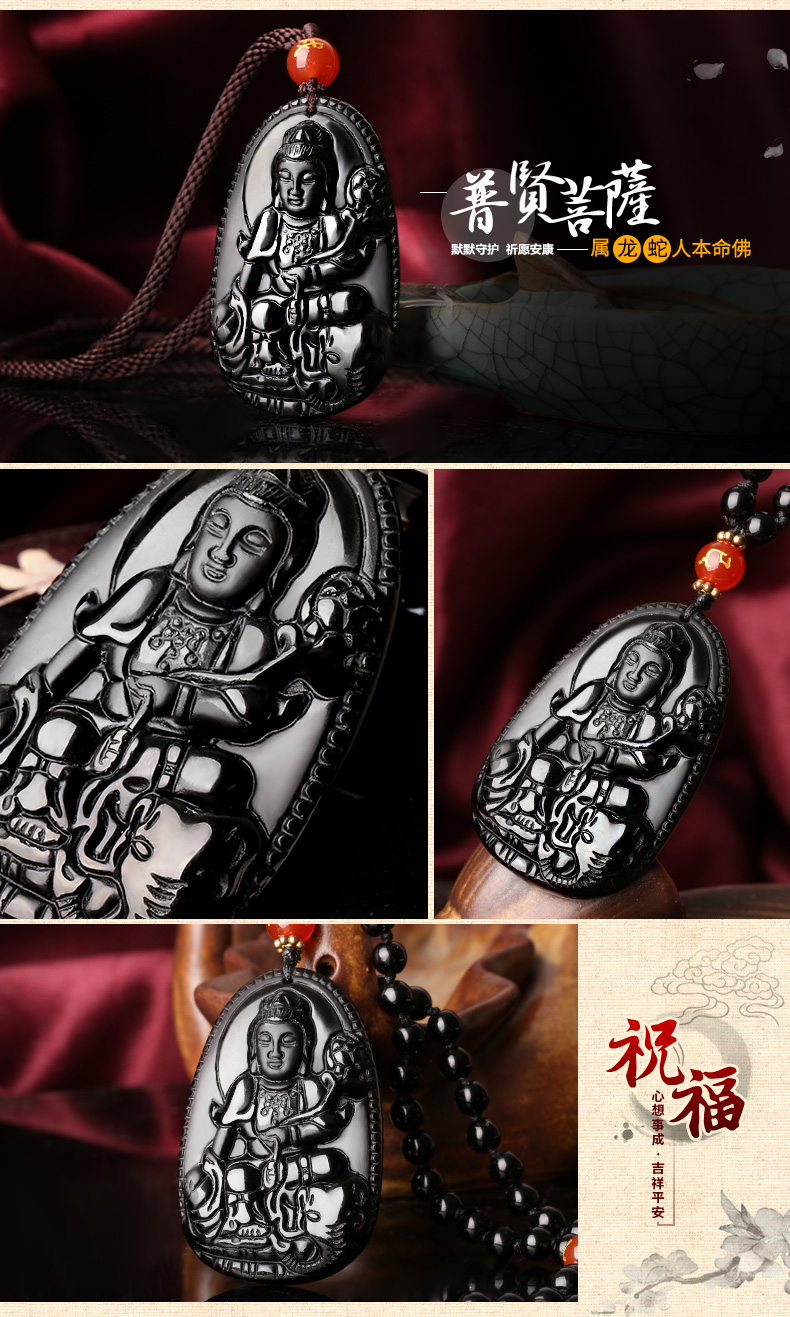 十二生肖黑曜石本命佛吊坠★属猪人本命佛阿弥陀佛★生肖三合项链★多种配绳