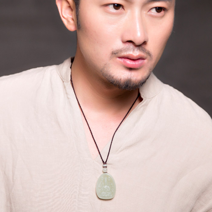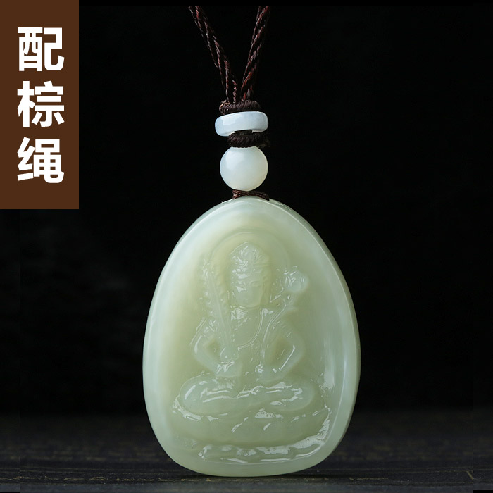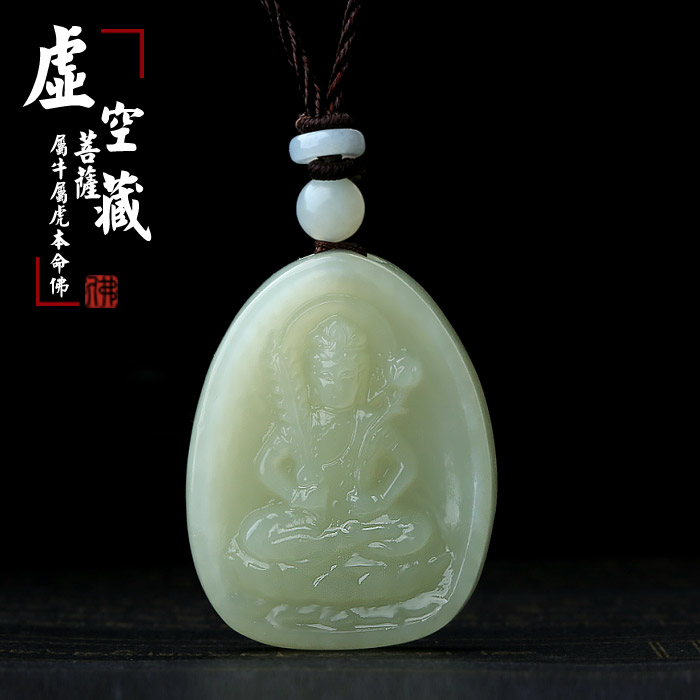 属牛属虎本命佛虚空藏菩萨吊坠★新雅款棕色绳★和田玉浅黄玉标准版