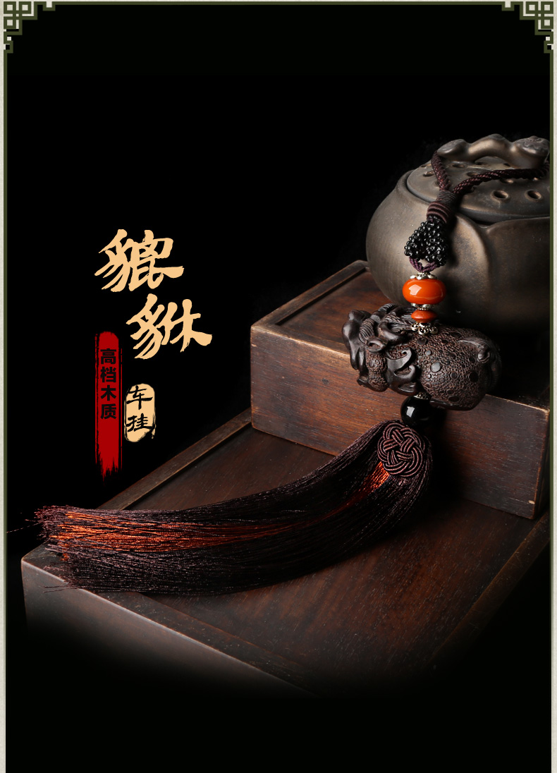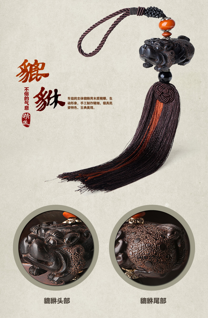 本款车挂主体貔貅用木材质精雕,生动形象,可以送领导,送朋友,送亲人,送爱人等、、、手工制作精细,送礼绝对有品位和档次,适合为您的爱车添置一款这样的车挂,俏皮可人。