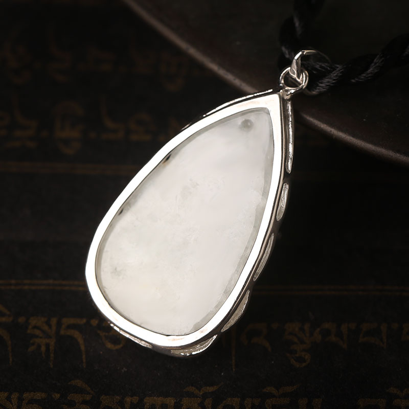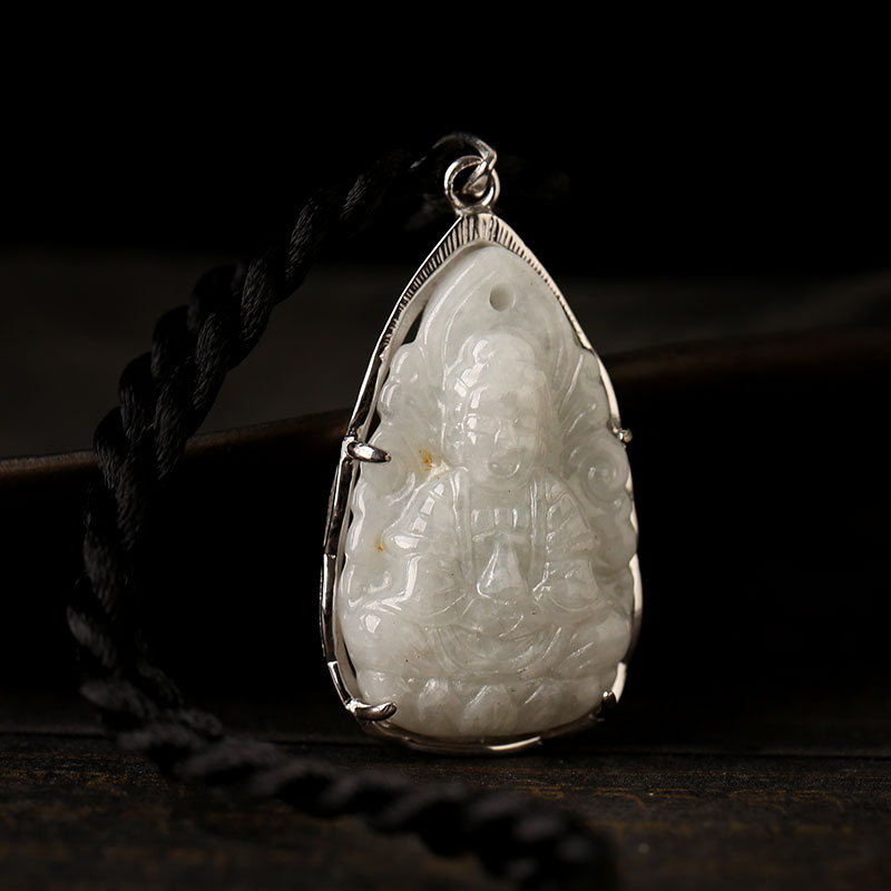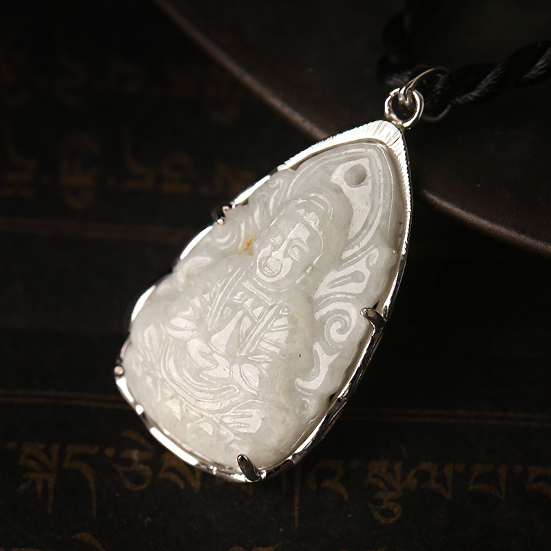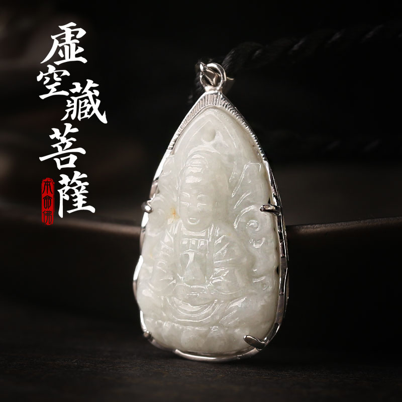 本虚空藏菩萨法像边缘镶有925银,适合女士和小朋友佩戴敬奉,可以戴在脖子上,也可以放在随身携带的包里。因为翡翠玉石的天然性,以及手工抛光打磨,可能存在雕工及颜色上的轻微差异,敬请理解。