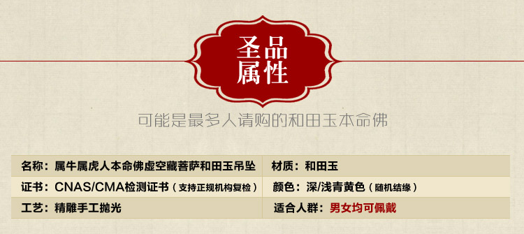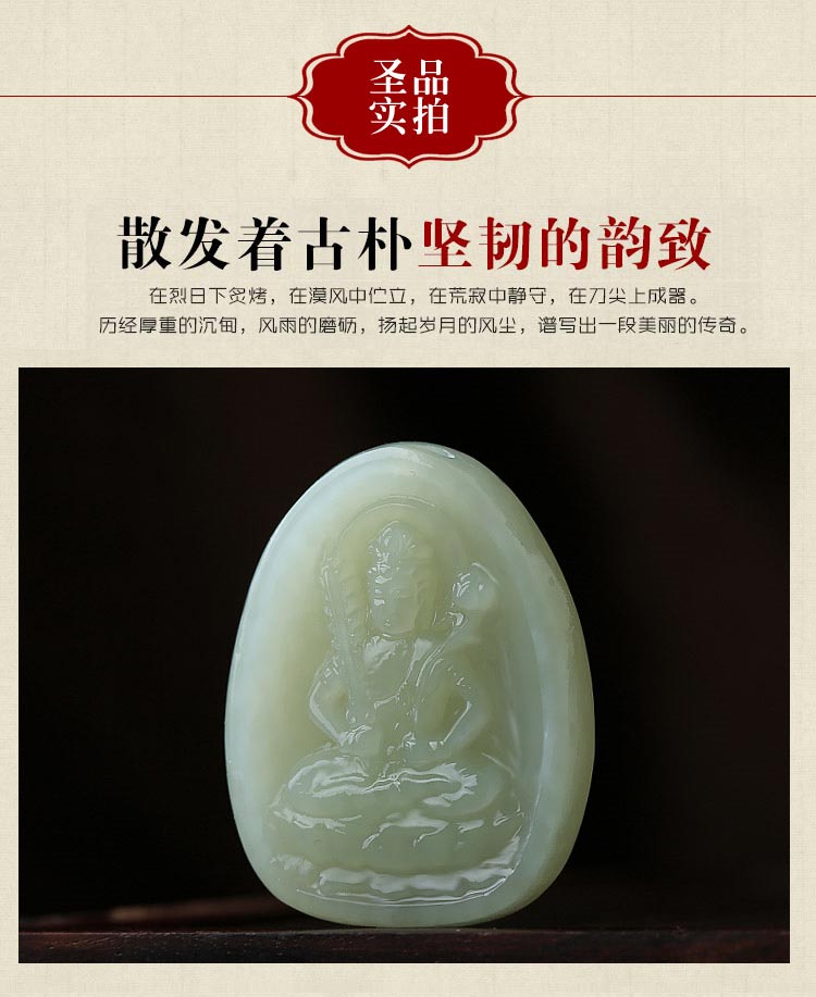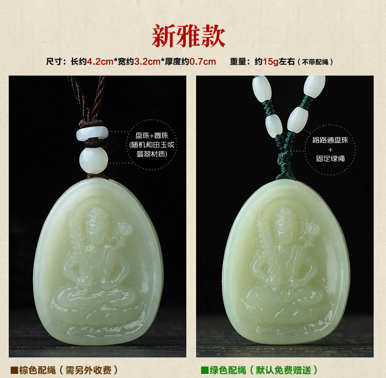 本虚空藏菩萨法像为标准尺寸,男女均可佩戴敬奉,可以戴在脖子上,也可以放在随身携带的包里。因为玉石的天然性,以及手工抛光打磨,可能存在雕工及颜色上的轻微差异,敬请理解。