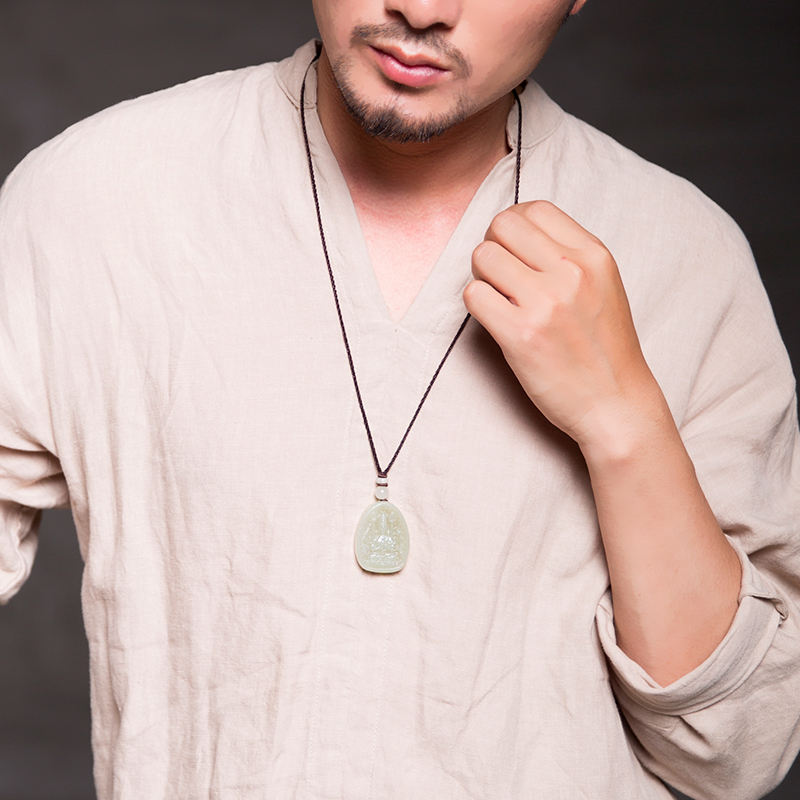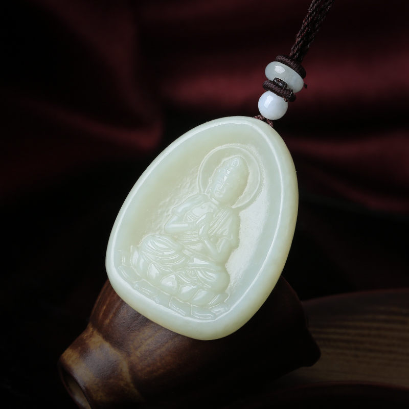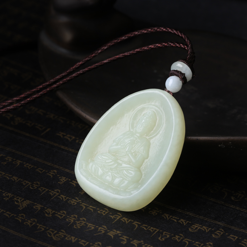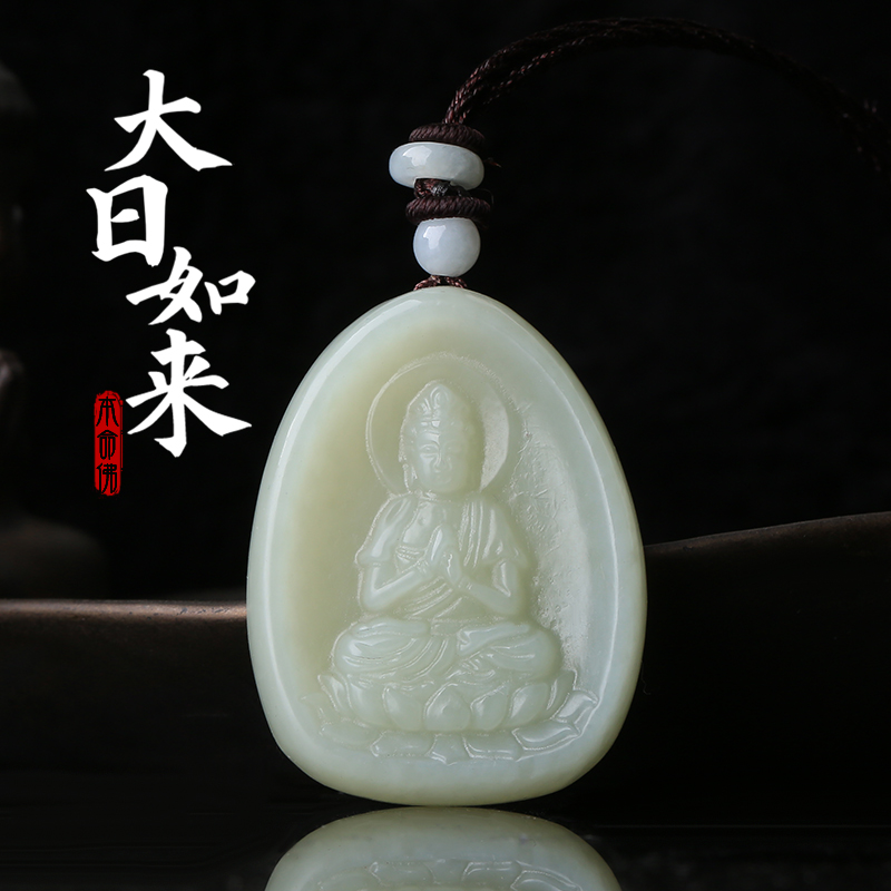 棕绳款属羊人本命佛大日如来吊坠★新雅款棕色绳绿色配绳★和田玉浅黄玉标准版