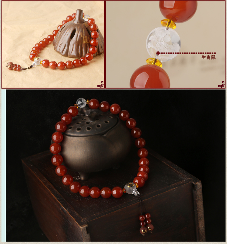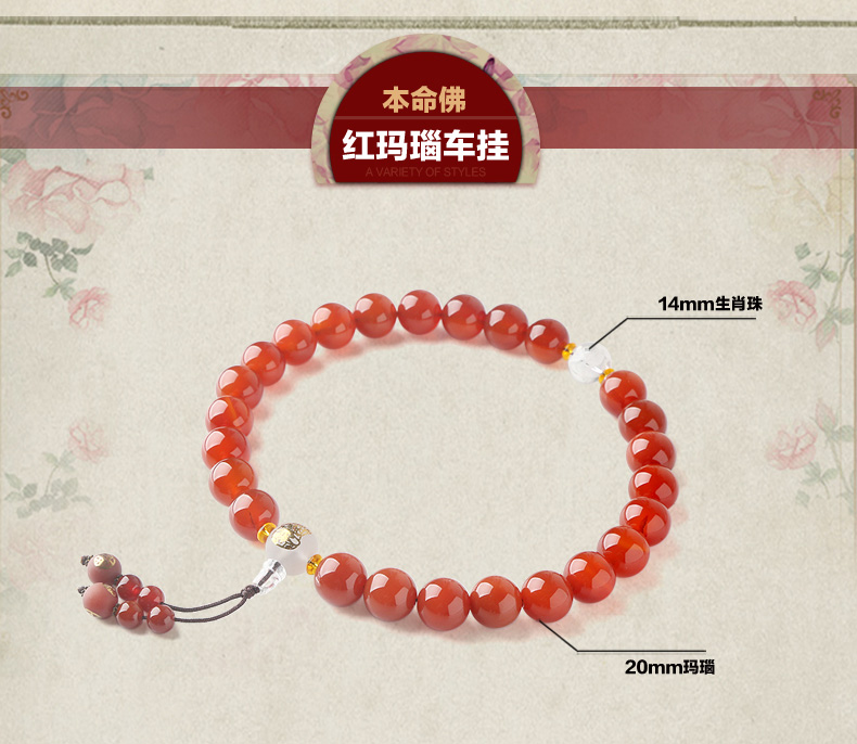 尺寸:红玛瑙珠子直径约16mm,本命佛珠子约15mm,生肖珠子约14mm