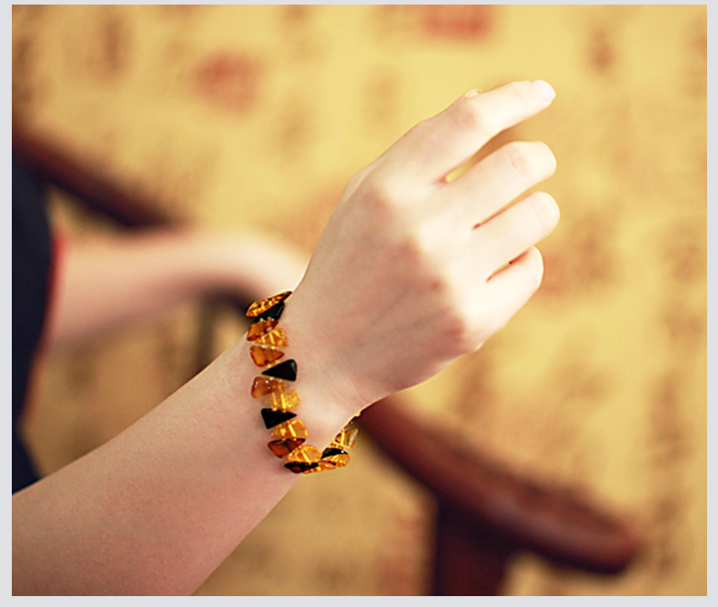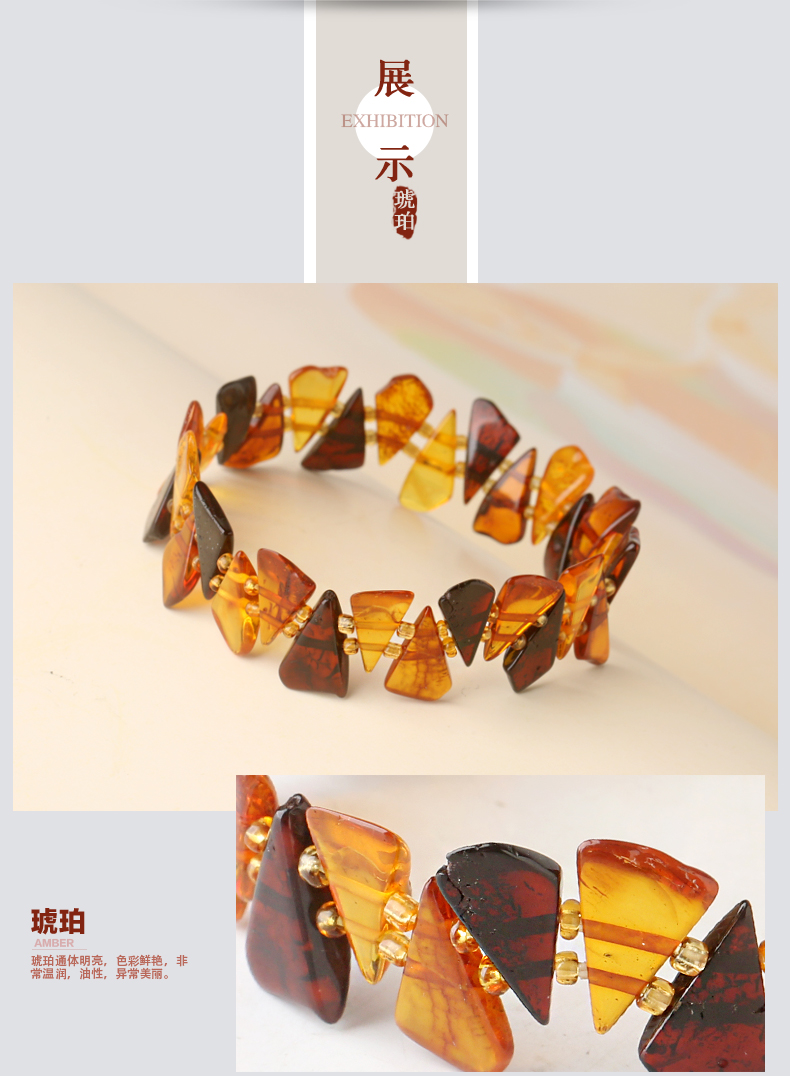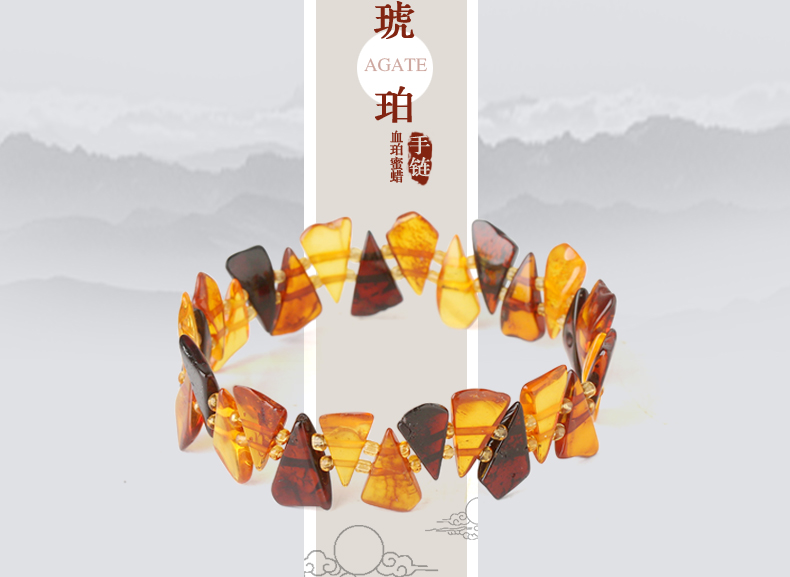 此款手链精美大方,琥珀蜜蜡材质非常珍贵,颜色彰显复古风,高贵优雅大方,佩戴轻盈舒适。