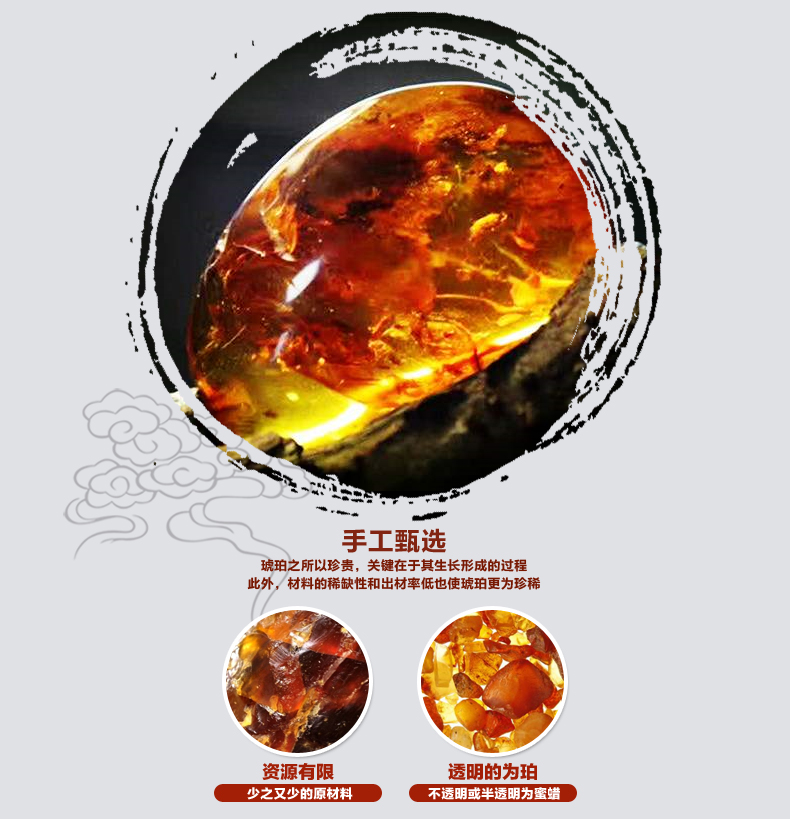 琥珀是数千万年前的树脂被埋藏于地下,经过一定的化学变化后形成的一种树脂化石,是一种有机的似矿物。
