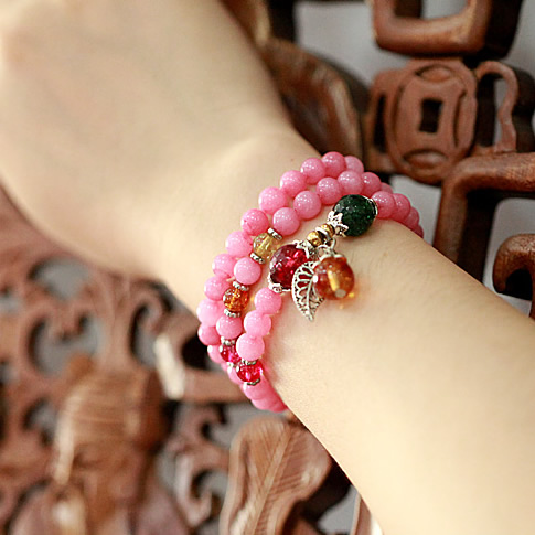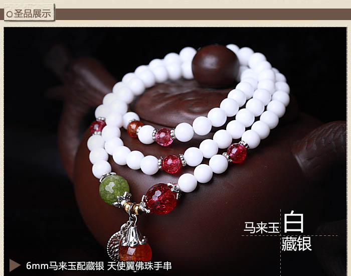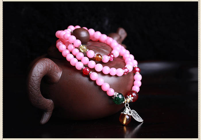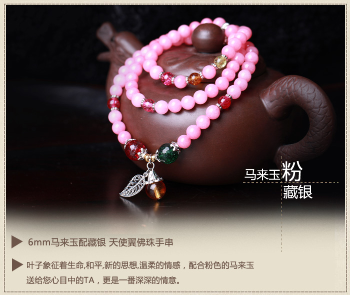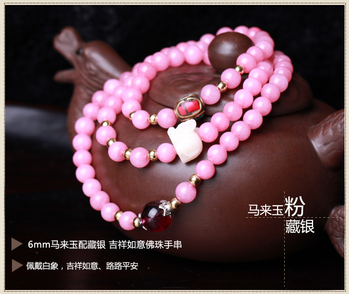 精品马来玉手链手串★粉色108颗佛珠手链