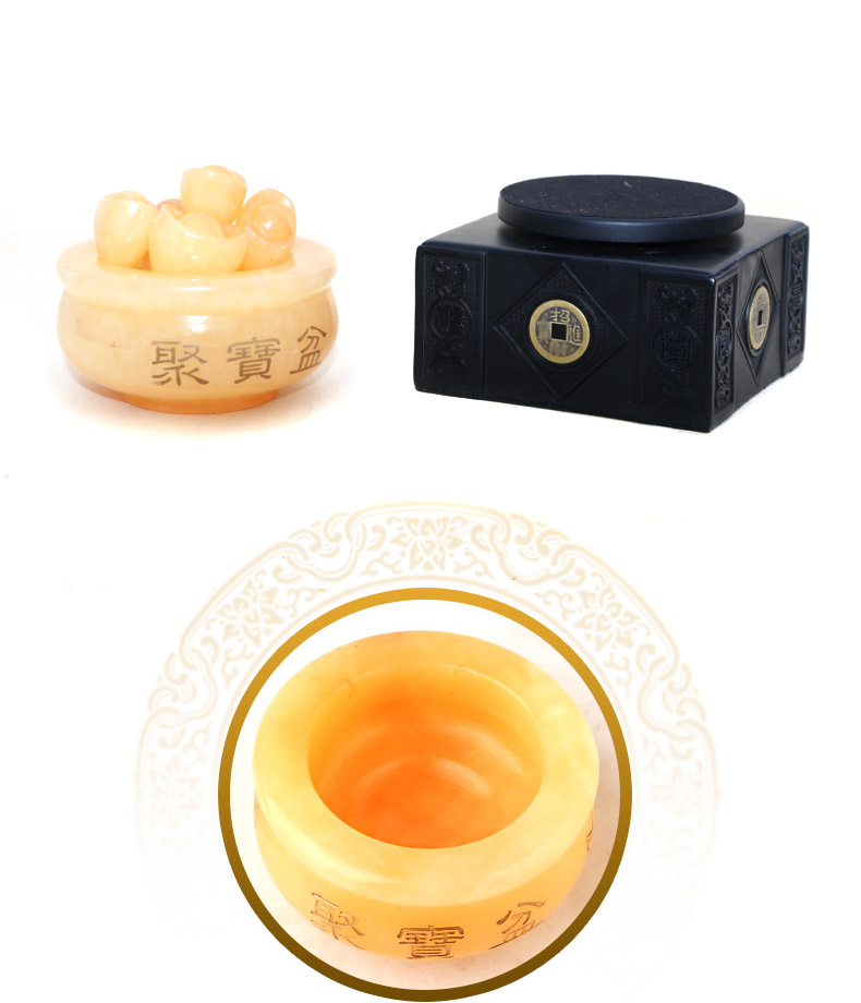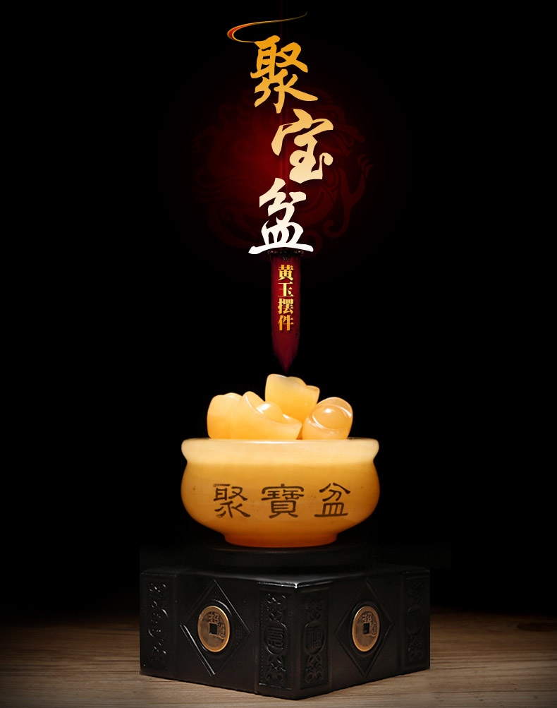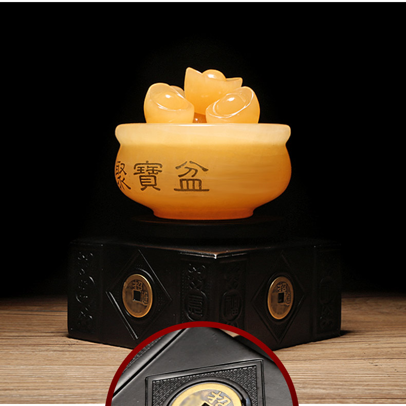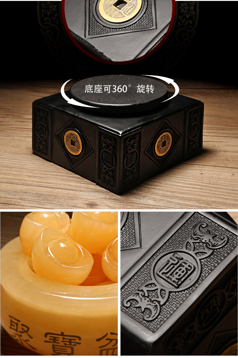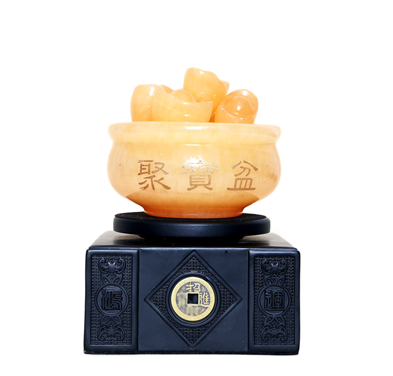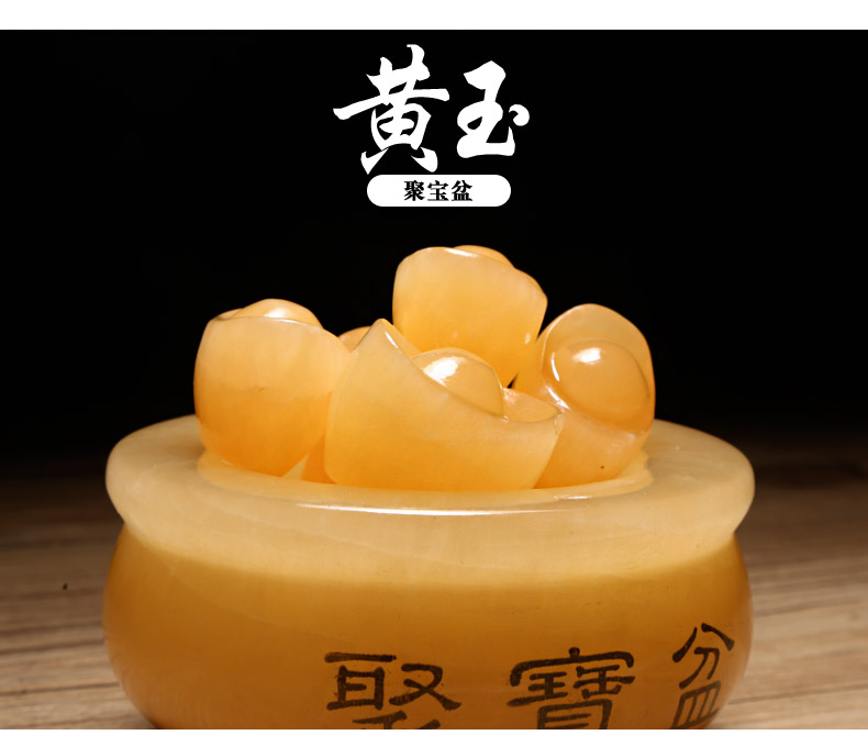 玉石聚宝盆摆件天然黄玉招财进宝客厅玄关前台装饰新中式开业礼品