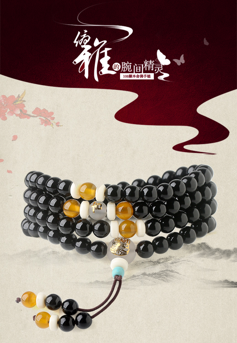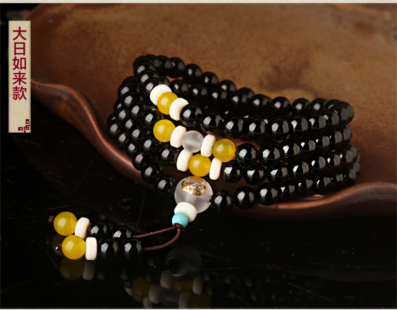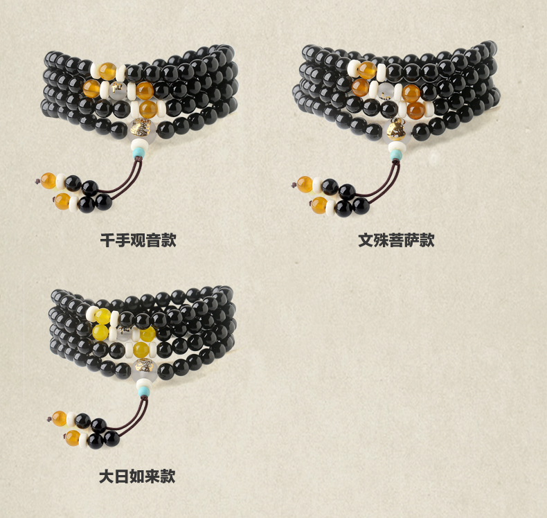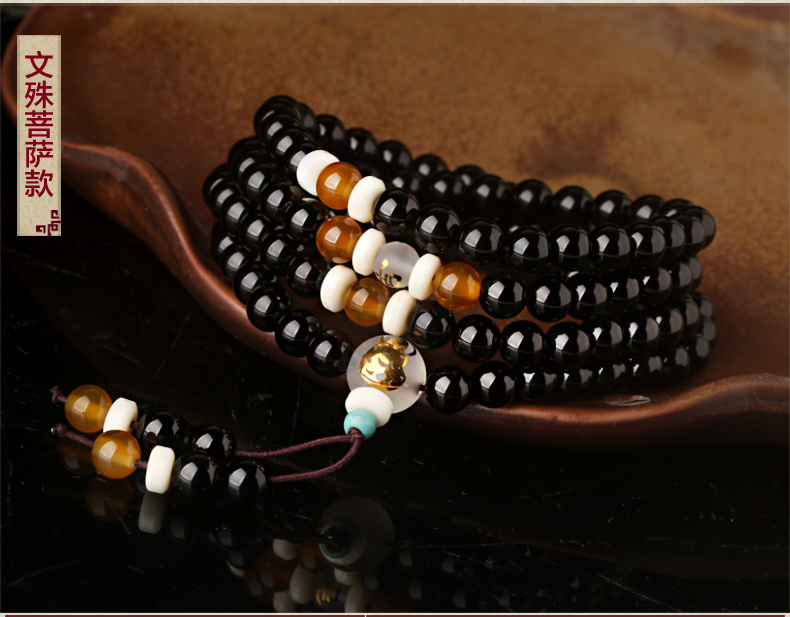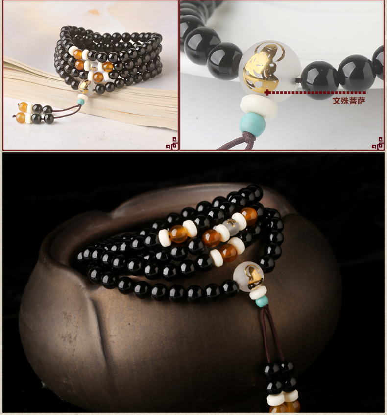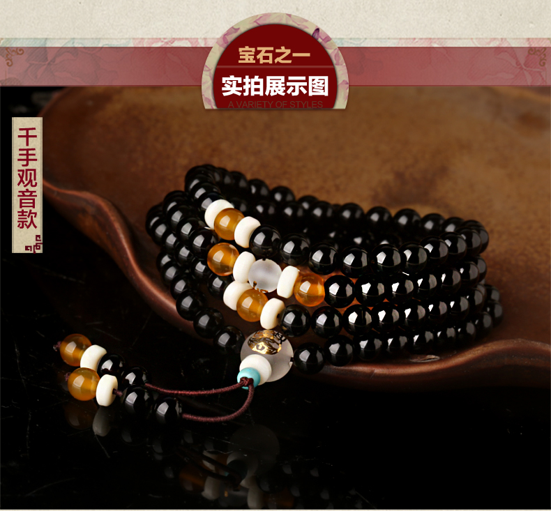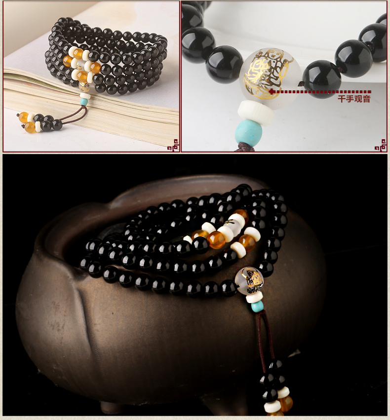新款108颗男式佛珠手链★属鼠本命佛念珠手串★6mm黑曜石千手观音菩萨饰品