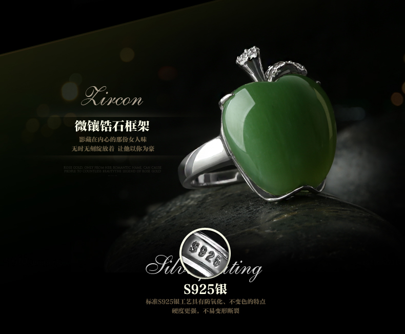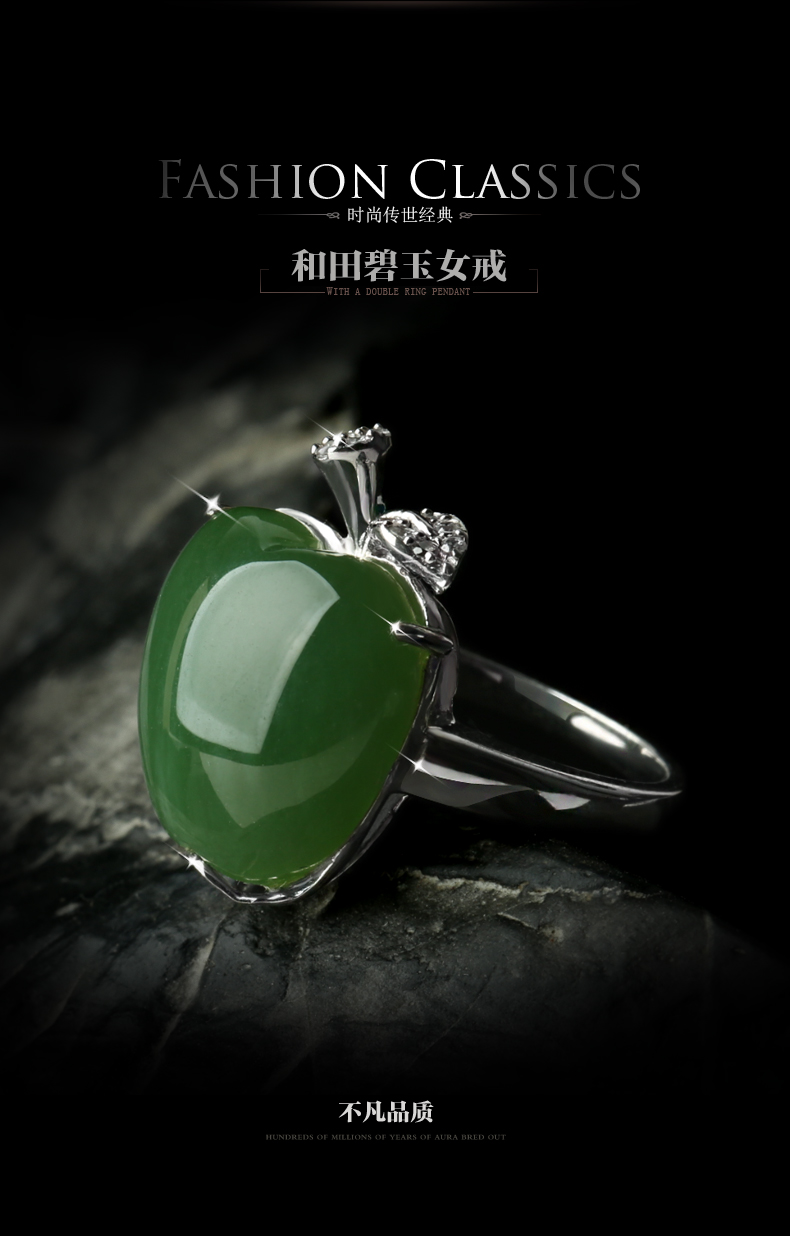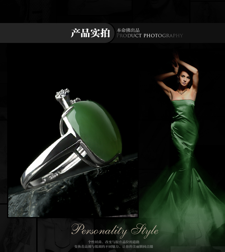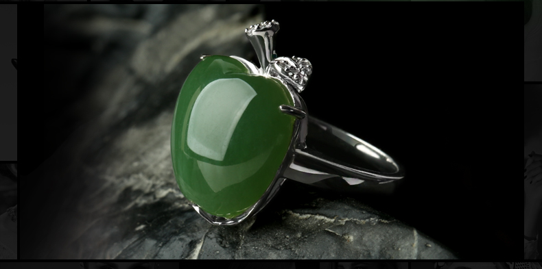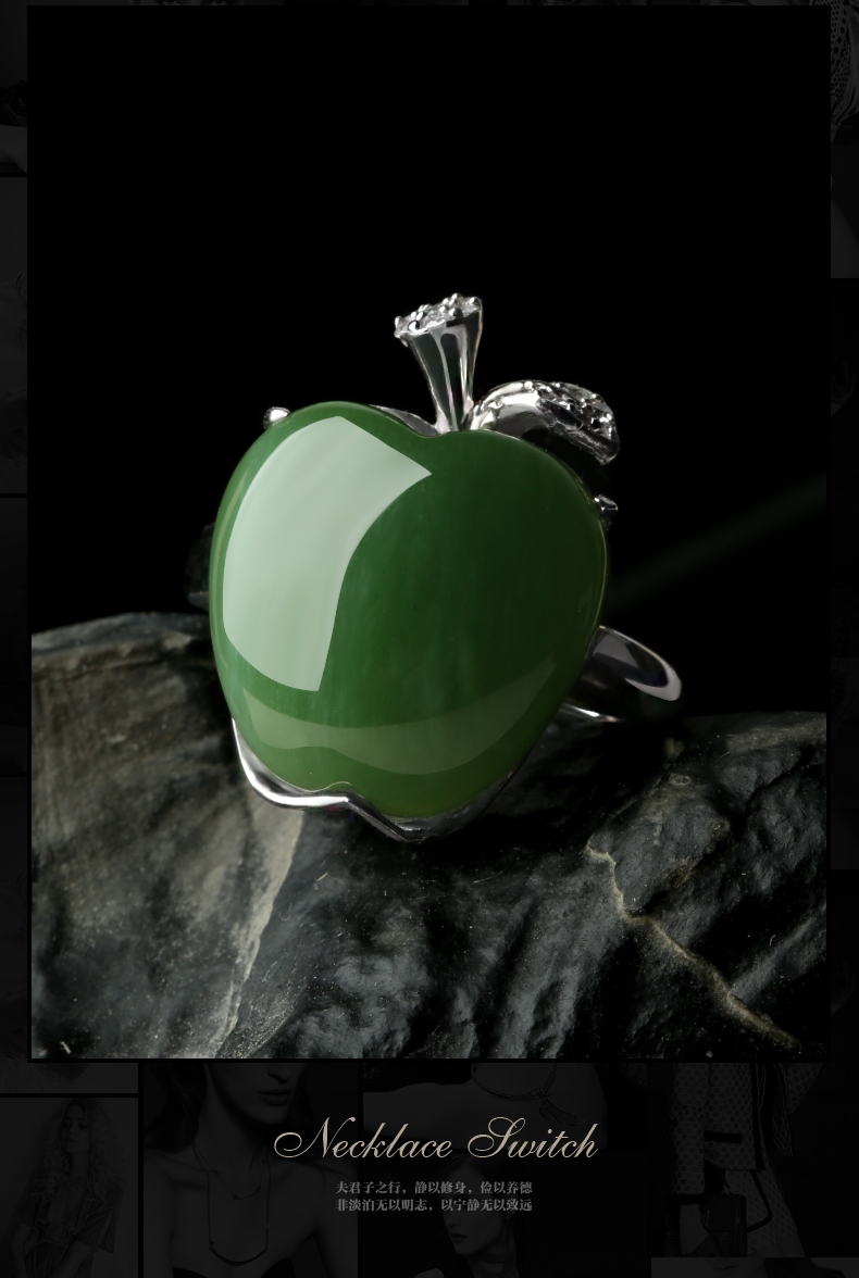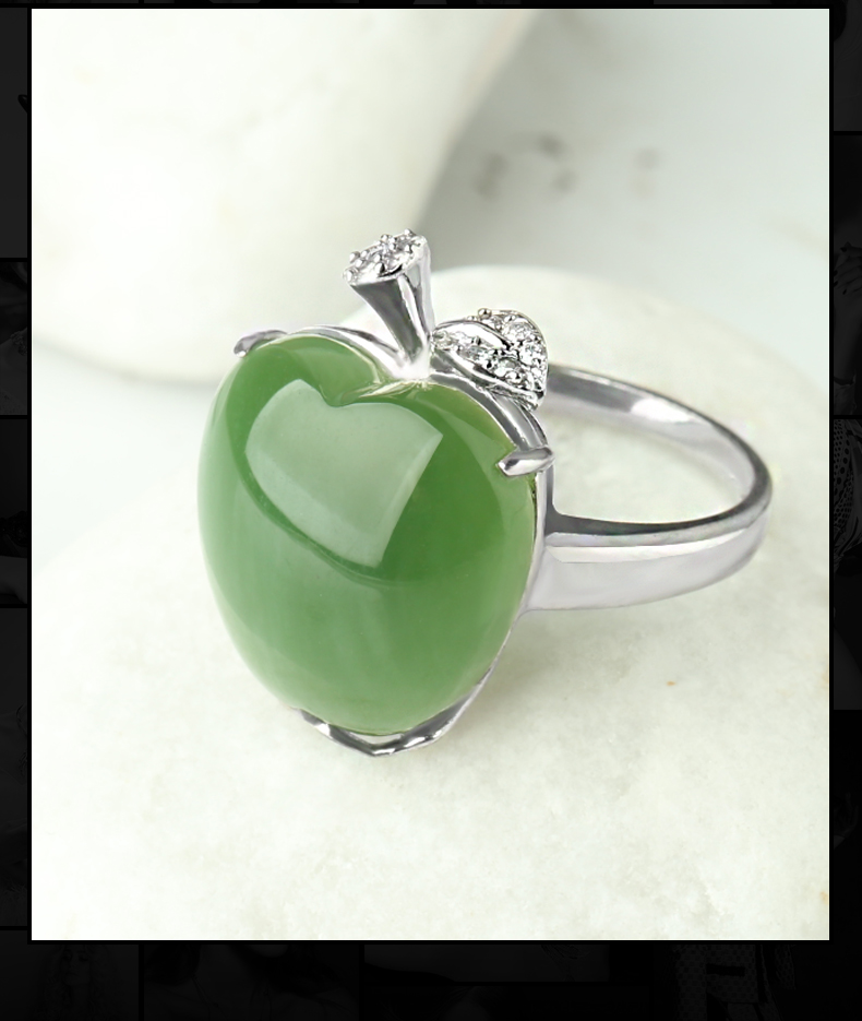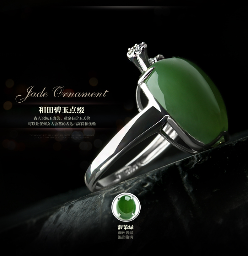 此款纯银镶碧玉蛋面戒指,宝贝油性一流,结构紧密明显、玉质的细腻、天然色彩非常漂亮,纯手工雕刻。