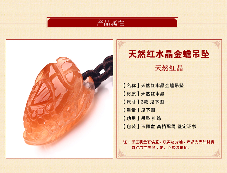 天然红水晶金蟾吊坠★红晶三脚蟾蜍小挂坠