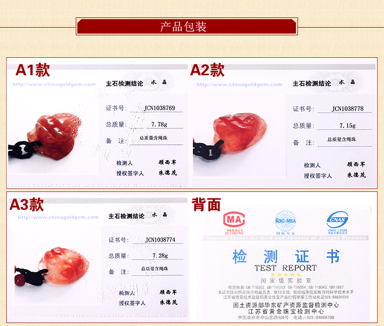 标明含鉴定证书的圣品免费赠送CMA/CNAS认可的鉴定证书。