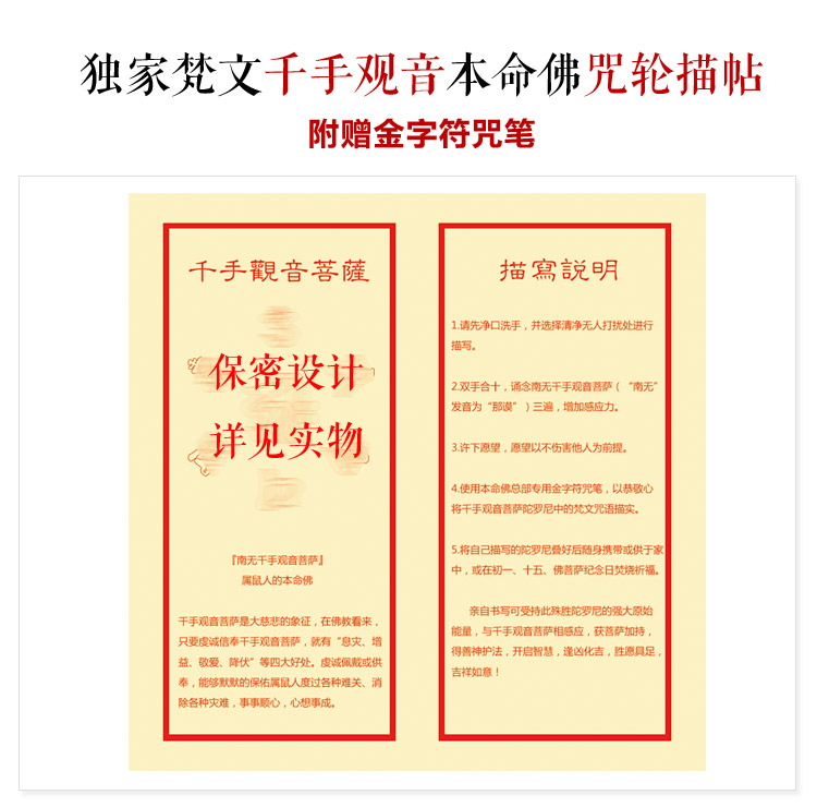 属鼠人本命佛千手观音菩萨梵文咒轮描帖