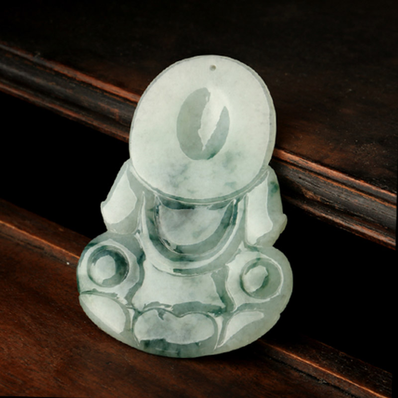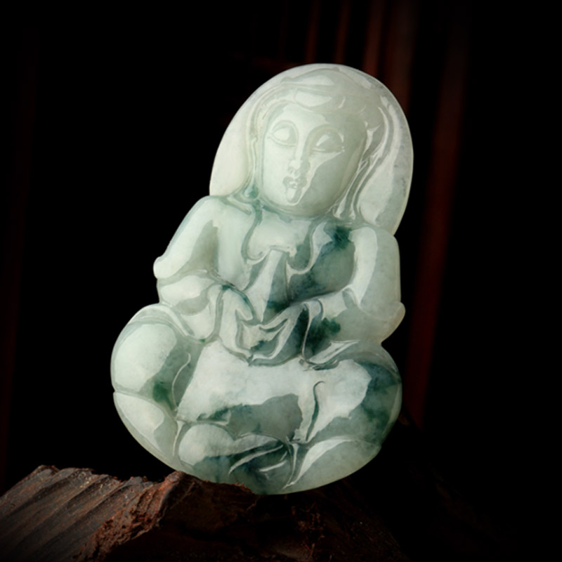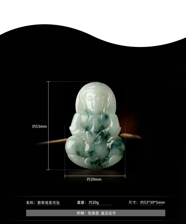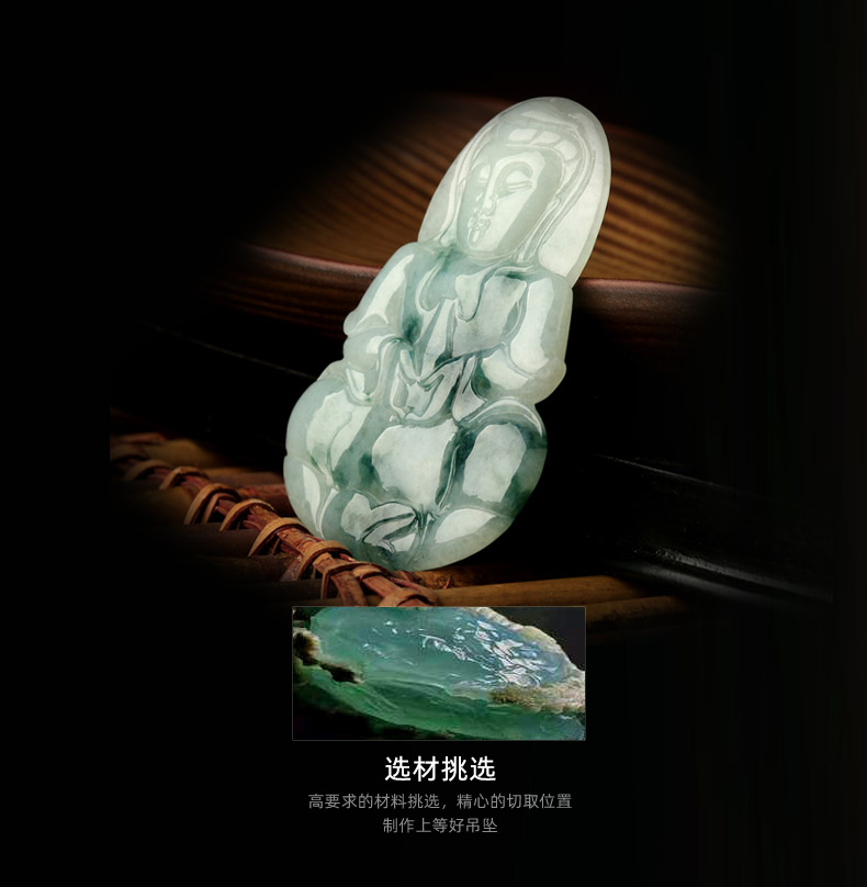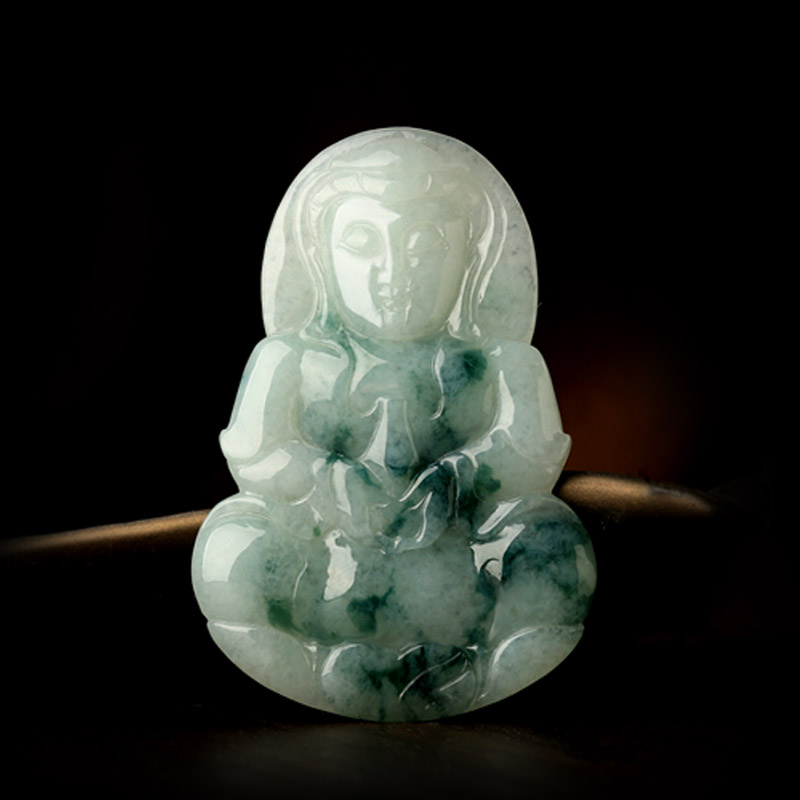 天然翡翠A货观音吊坠★冰糯种翡翠飘蓝花观世音菩萨挂坠