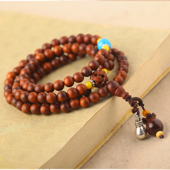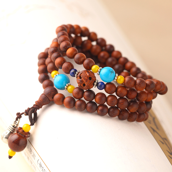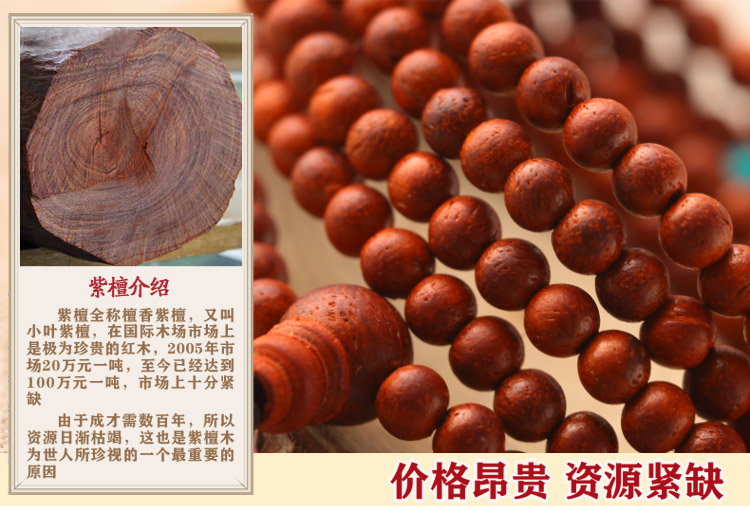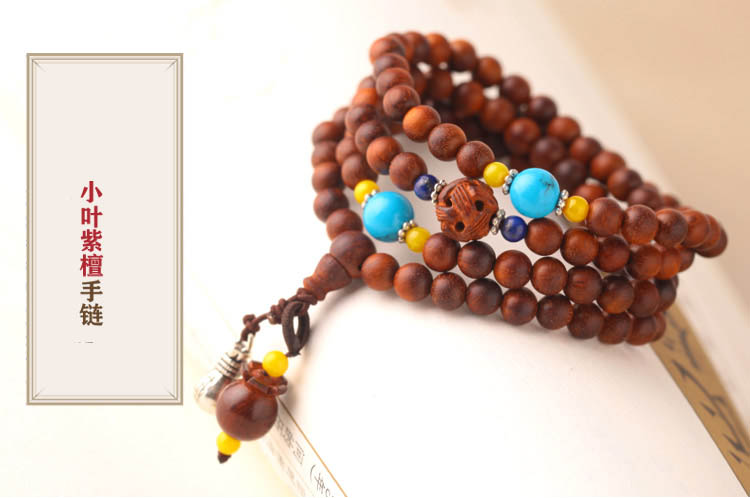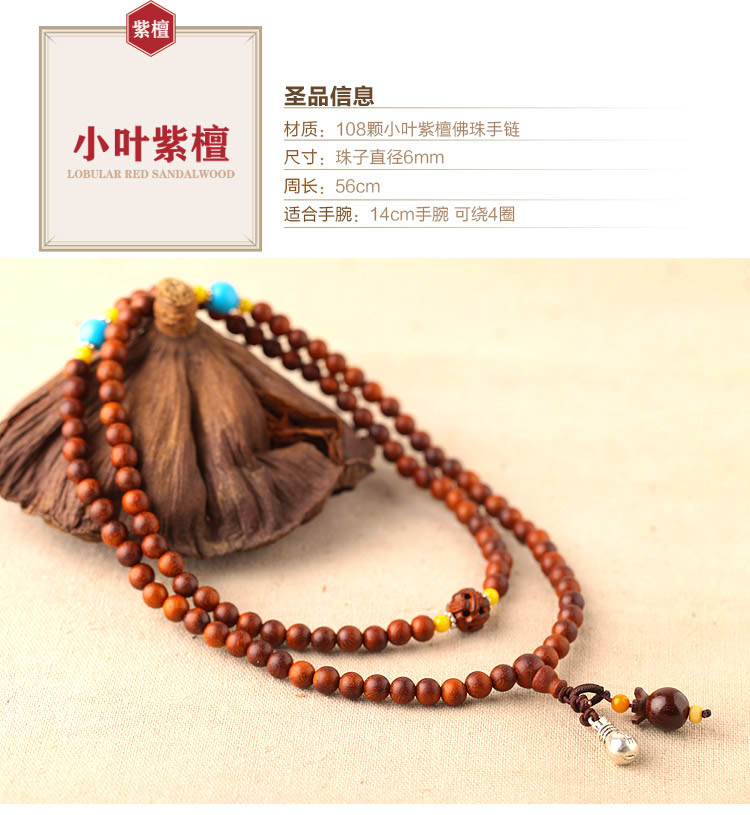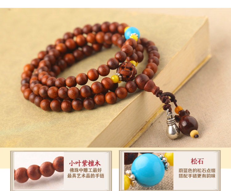108颗小叶紫檀佛珠手链★6mm紫檀木多层念珠手串