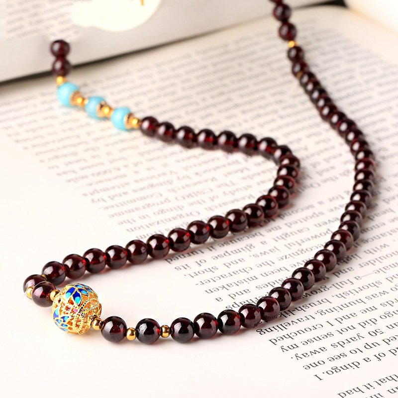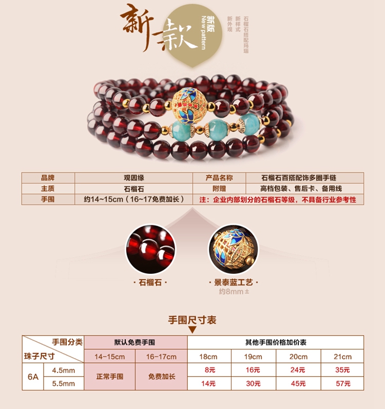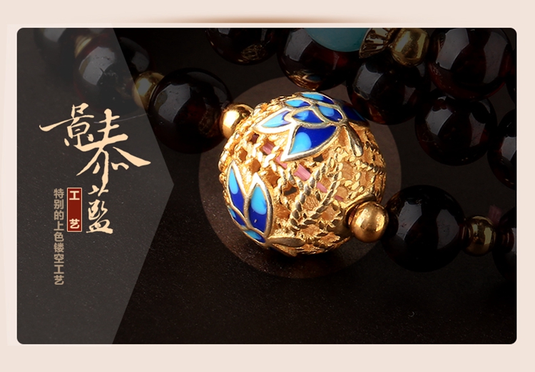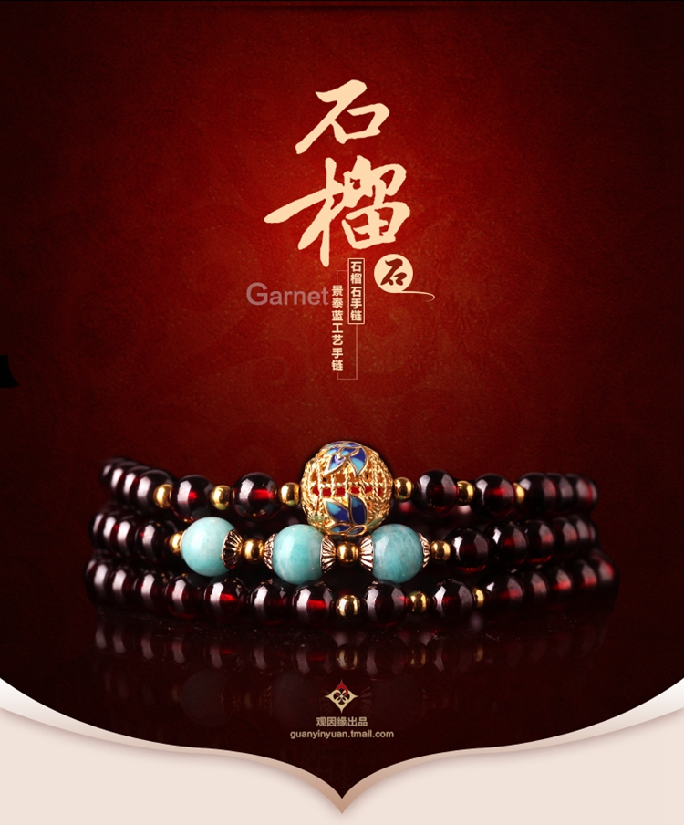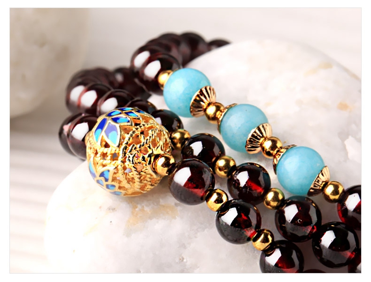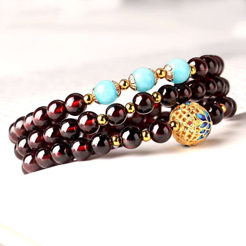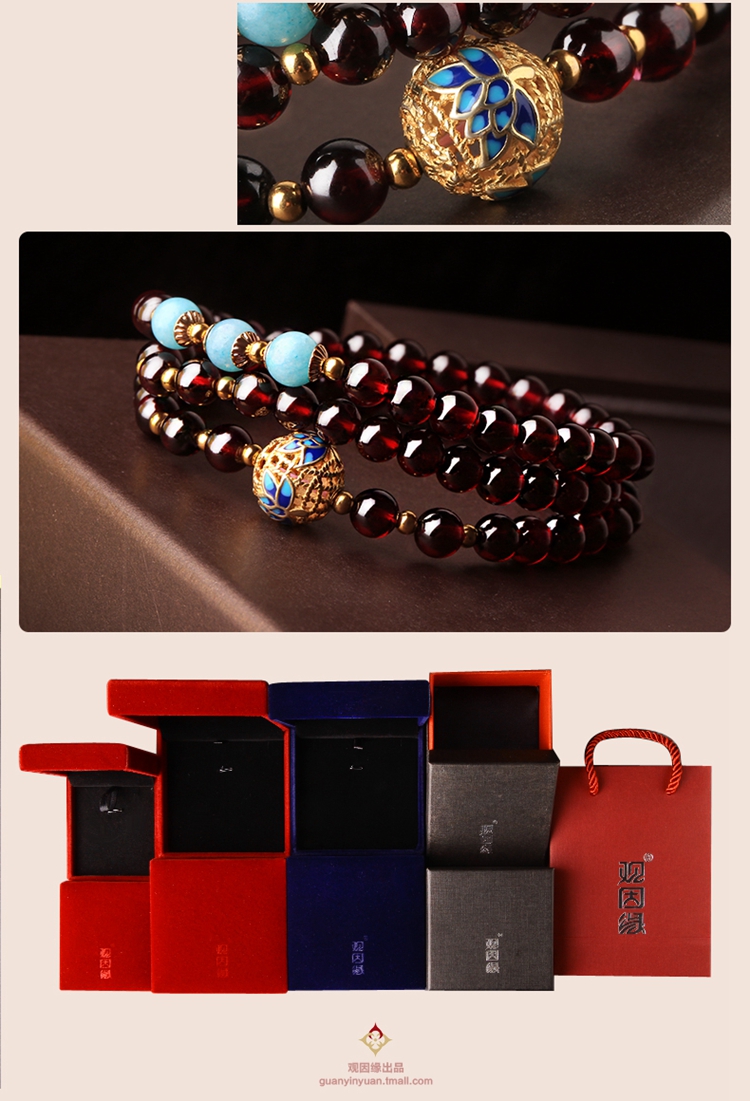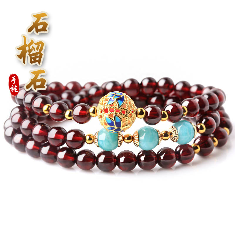 天然石榴石手链★精美佛莲花多圈手串★时尚优雅女性饰品