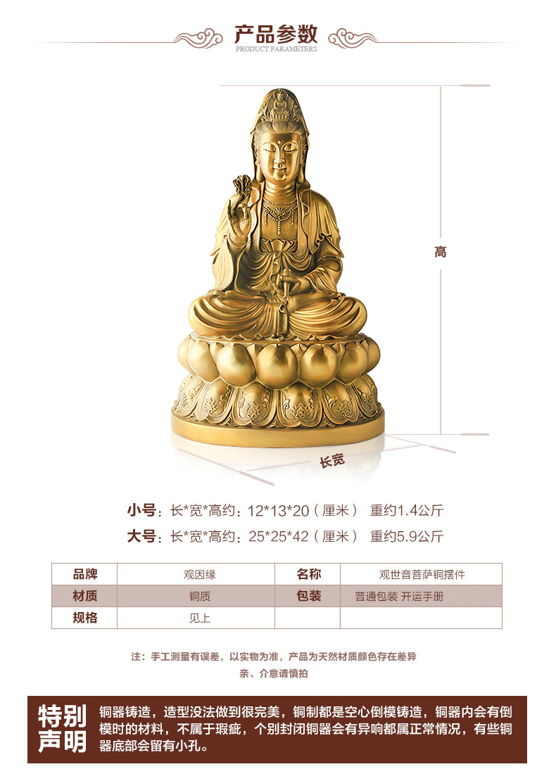 铜器杨柳观音菩萨摆件★观世音菩萨家居工艺品摆设