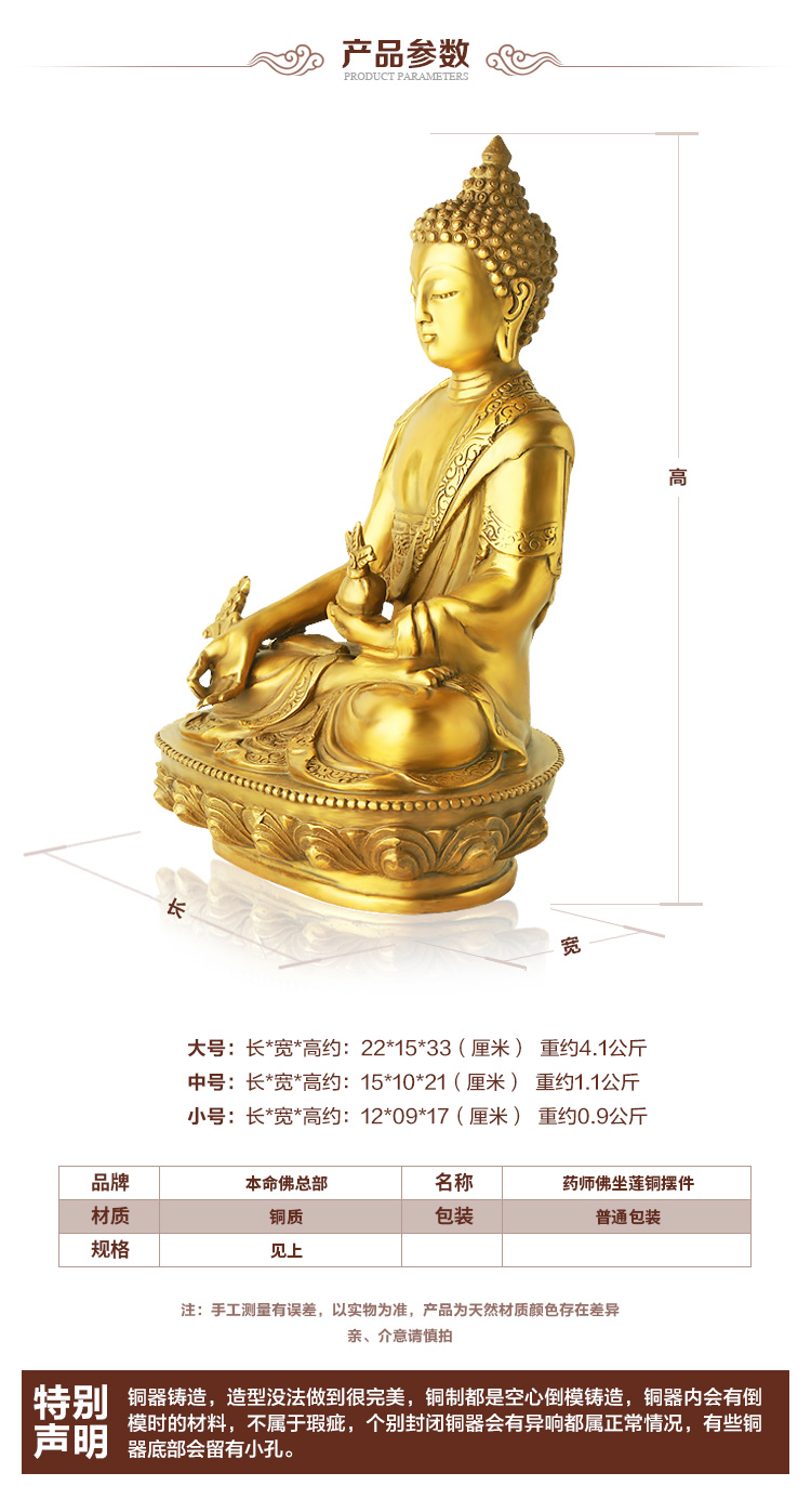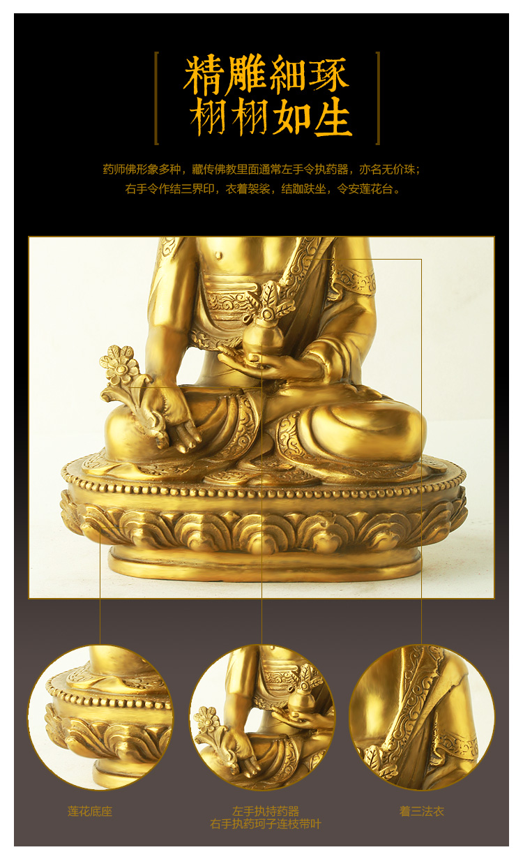 铜器工艺摆件★药师佛坐莲家居工艺品摆设
