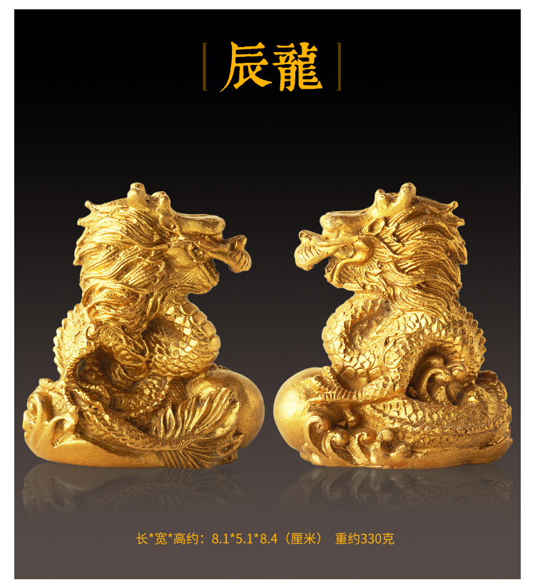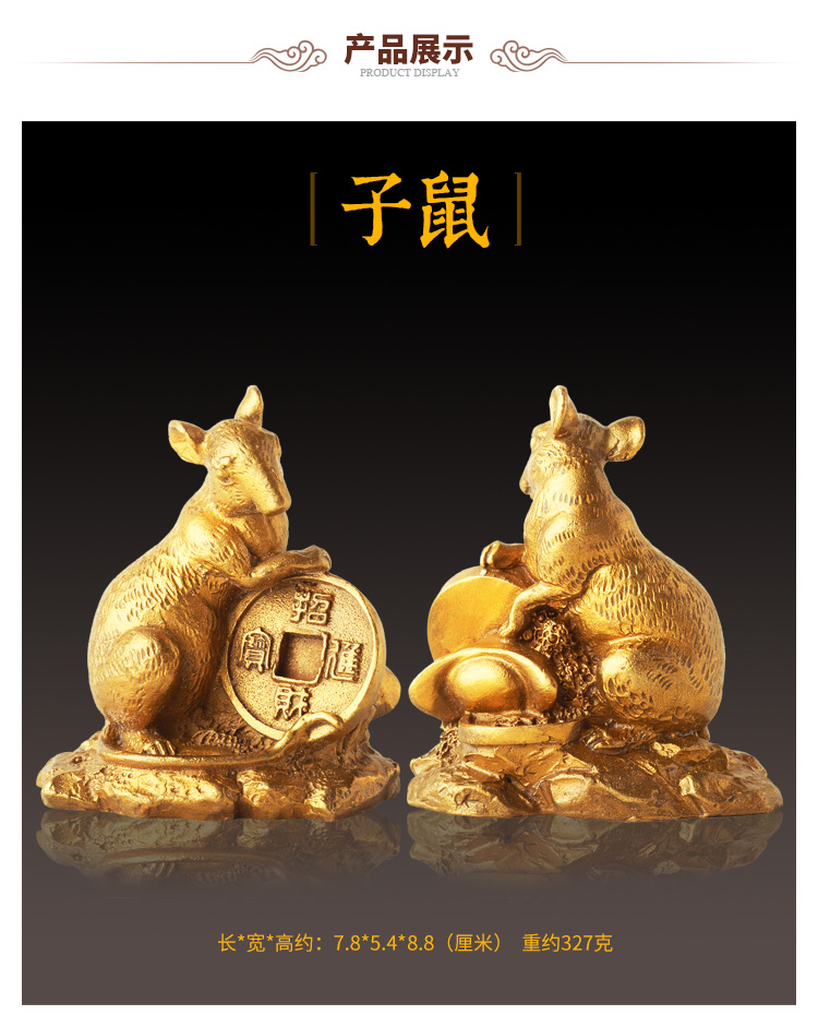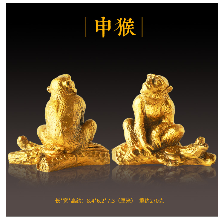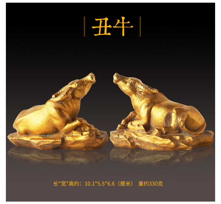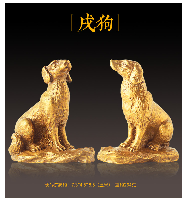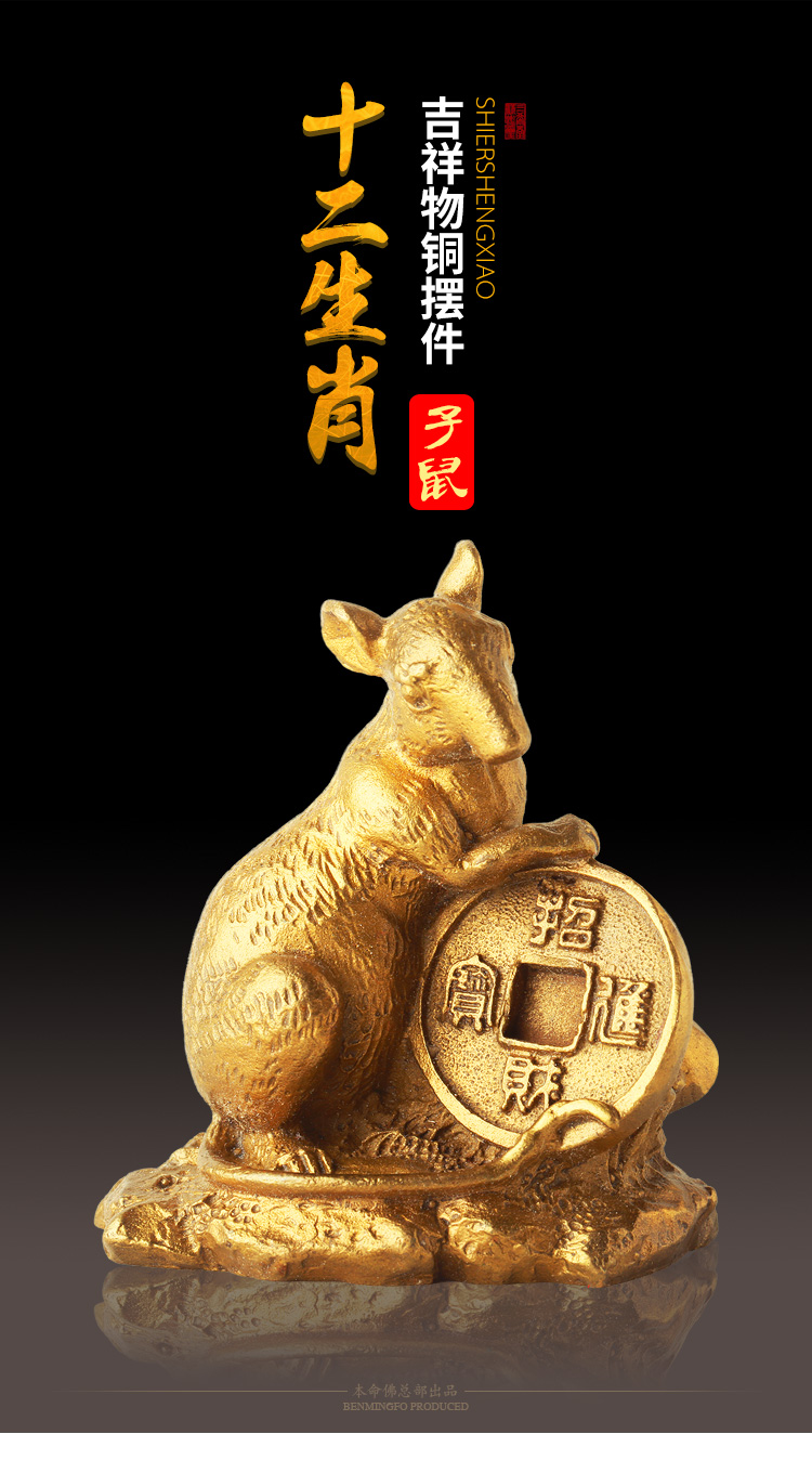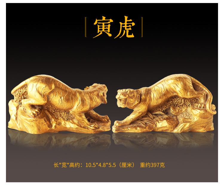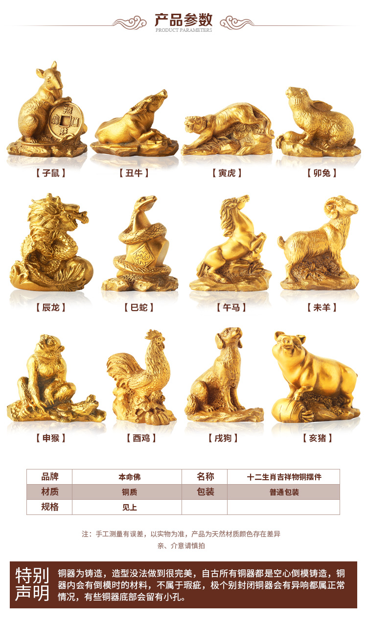 此系列圣品为黄铜材质的十二生肖吉祥物摆件,造型栩栩如生,生肖动物千姿百态,工艺考究。
