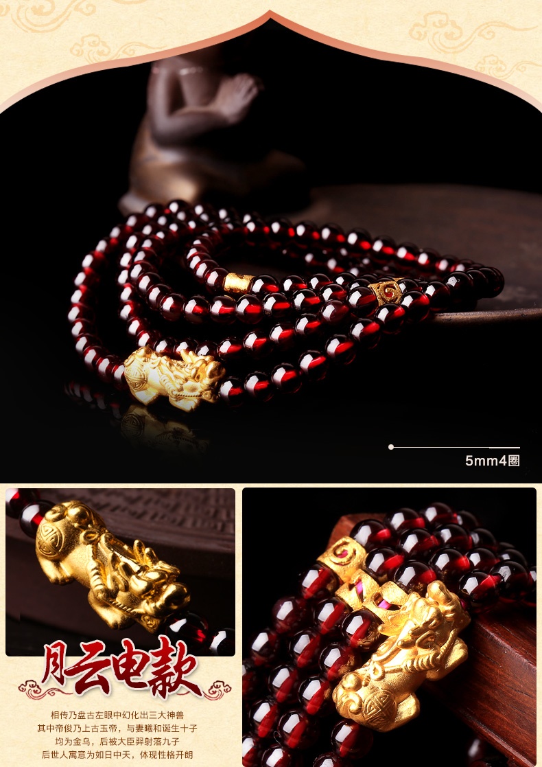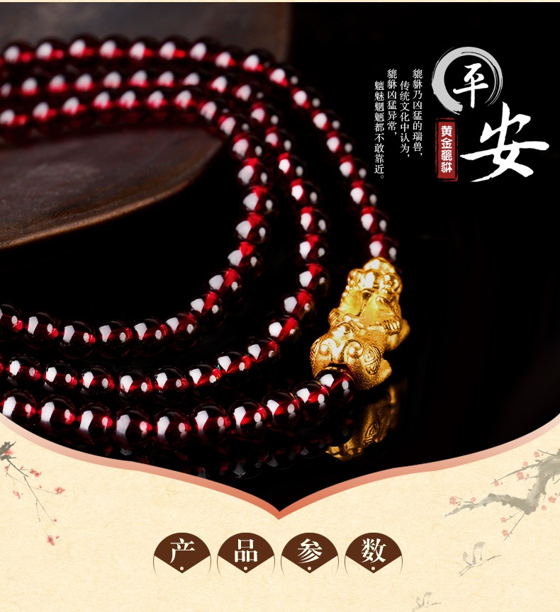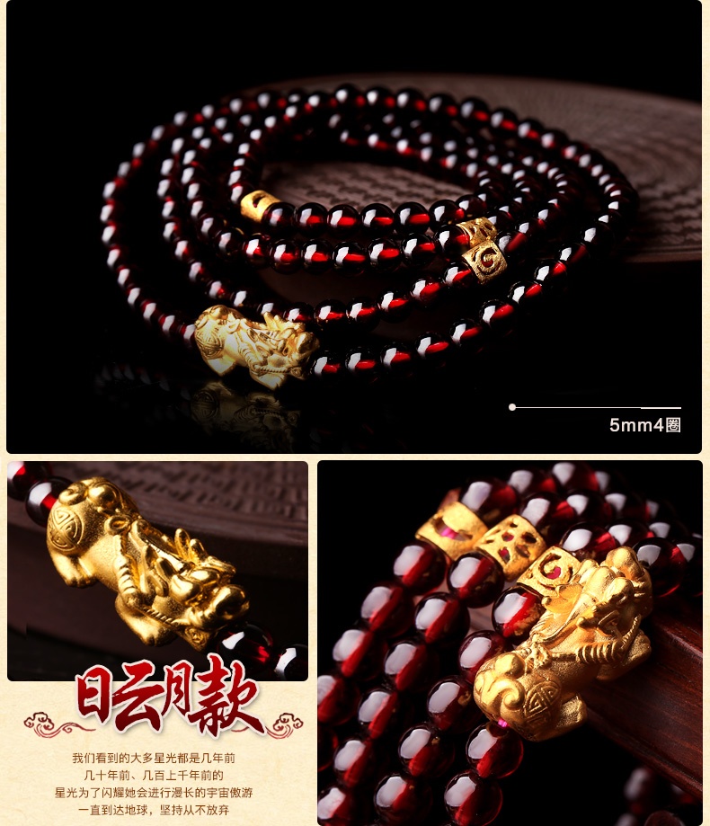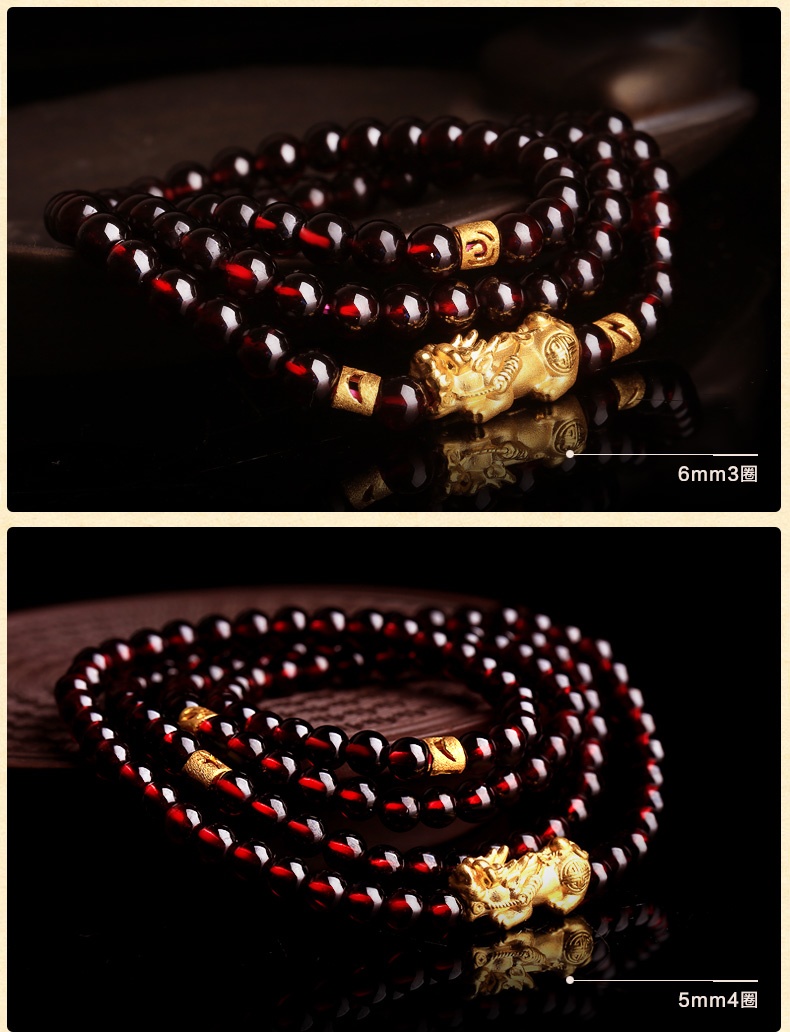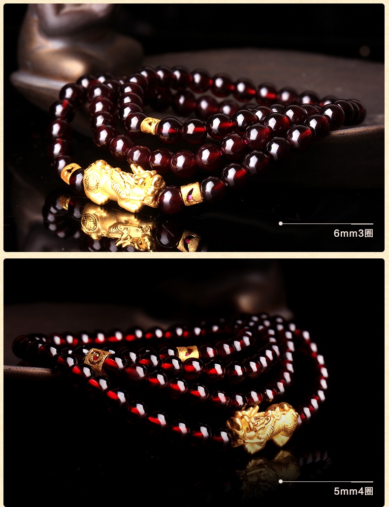 6A级天然石榴石手链★黄金足金貔貅多圈手串★女性定制【多款】