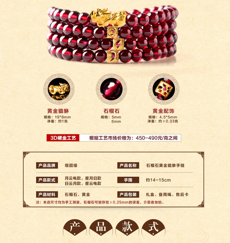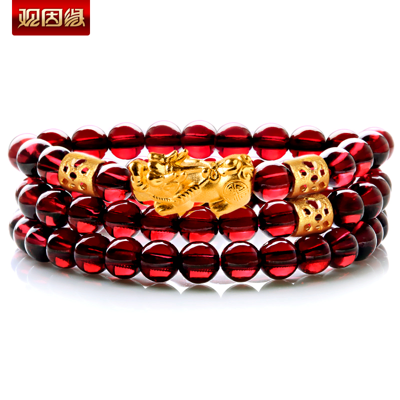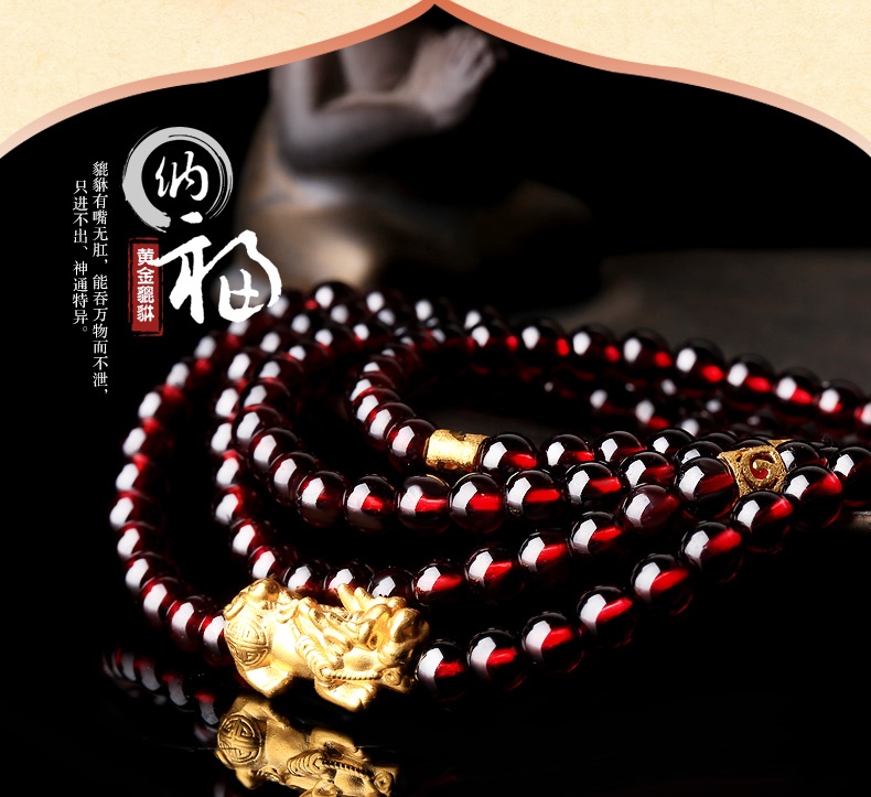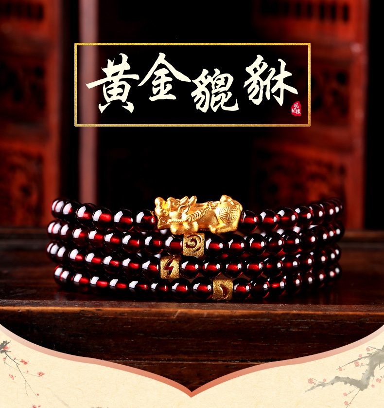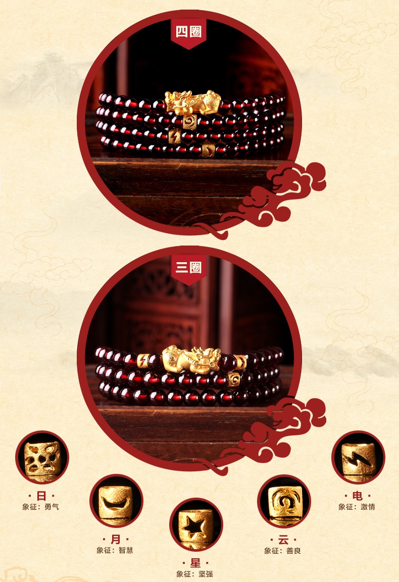 6A级天然石榴石手链★黄金足金貔貅多圈手串★女性定制【多款】