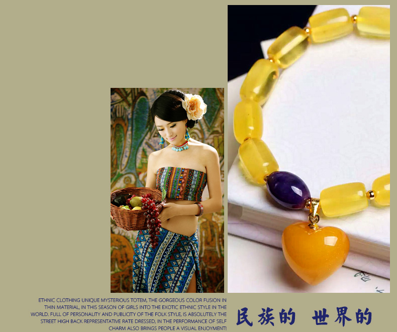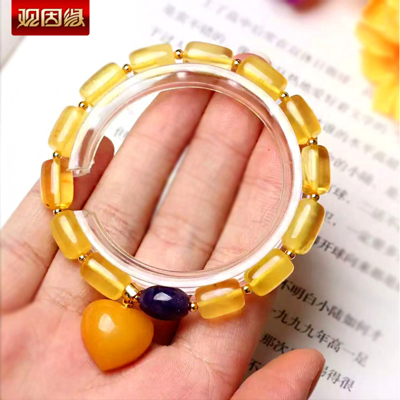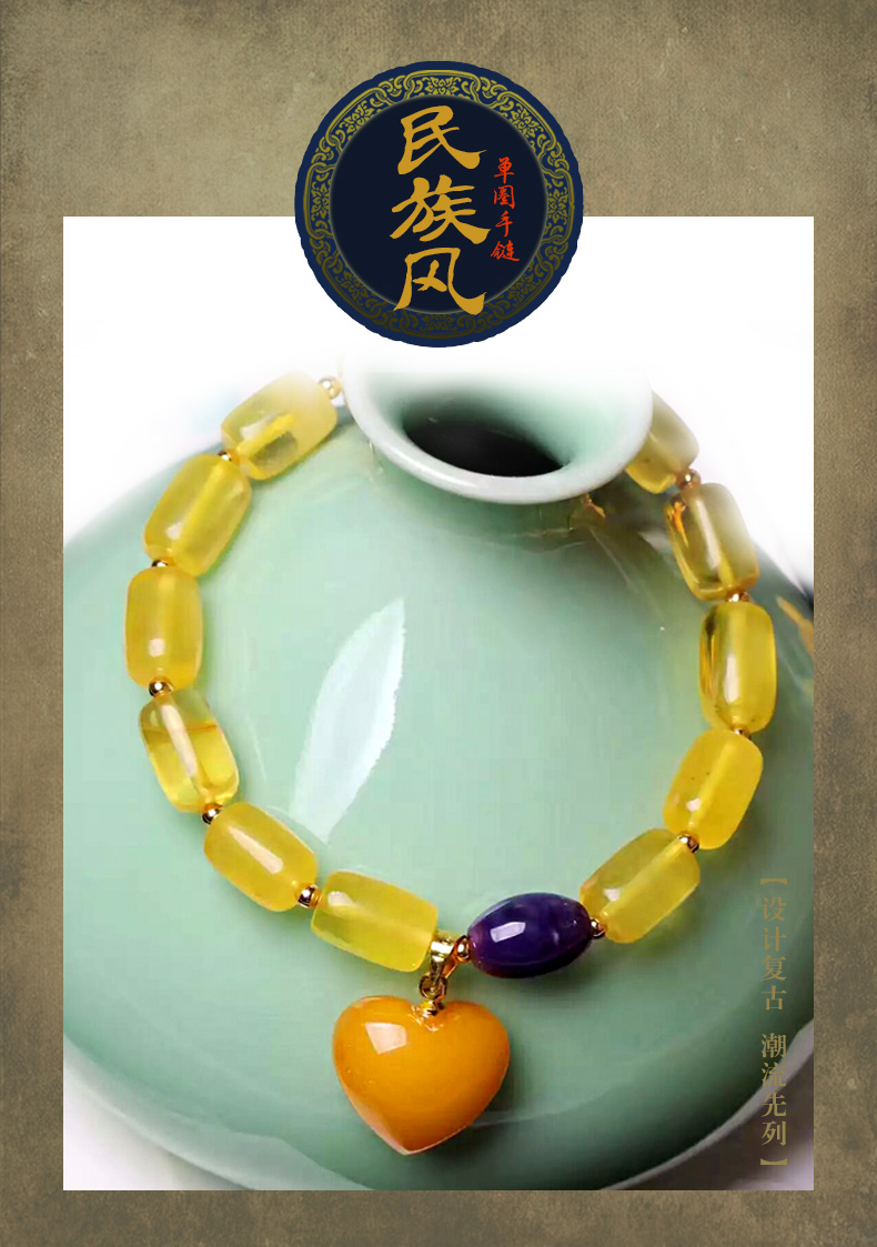 心型蜜蜡单圈手链★配南红玛瑙天河石手串★名族风高端精美礼品