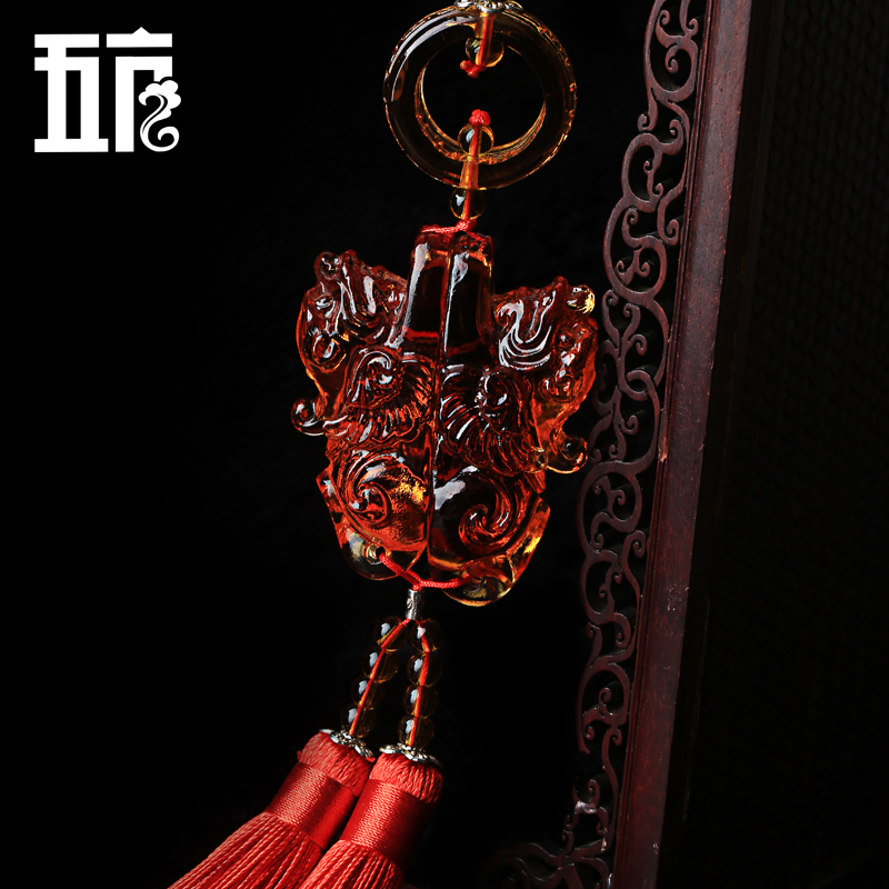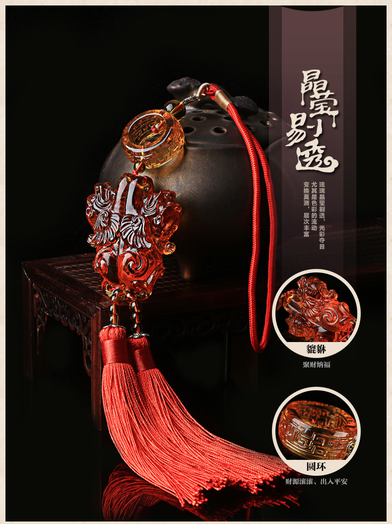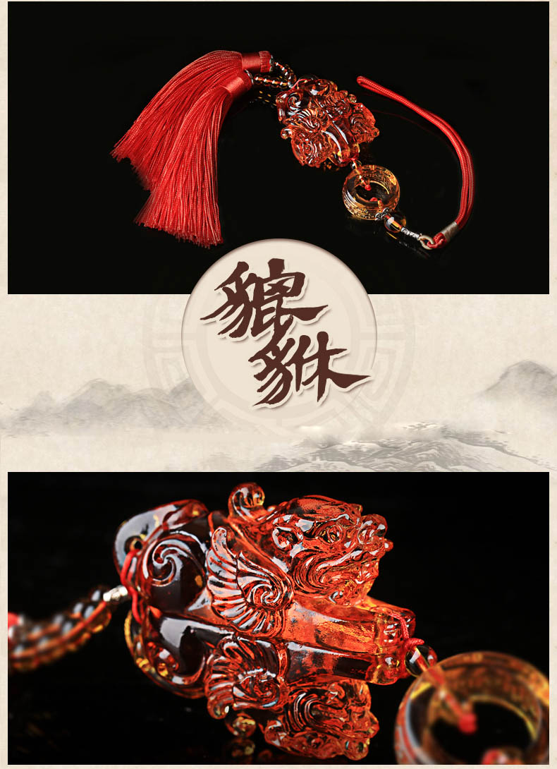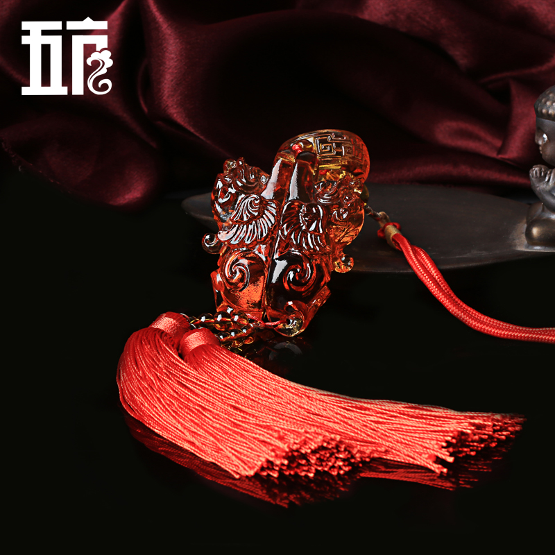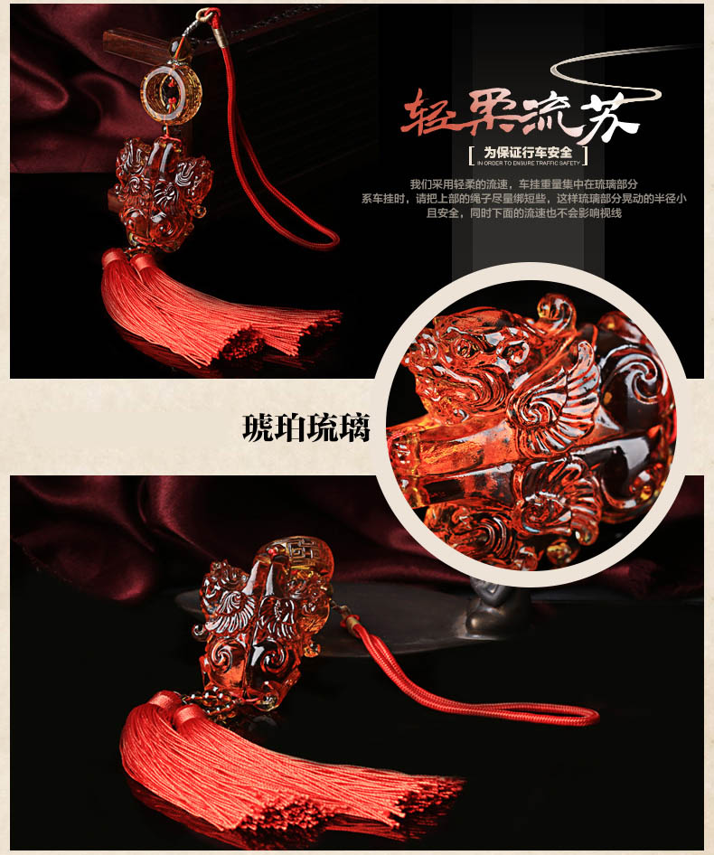 古法琉雌雄对璃貔貅汽车挂饰★琥珀彩色双皮休财源滚滚琉璃车挂