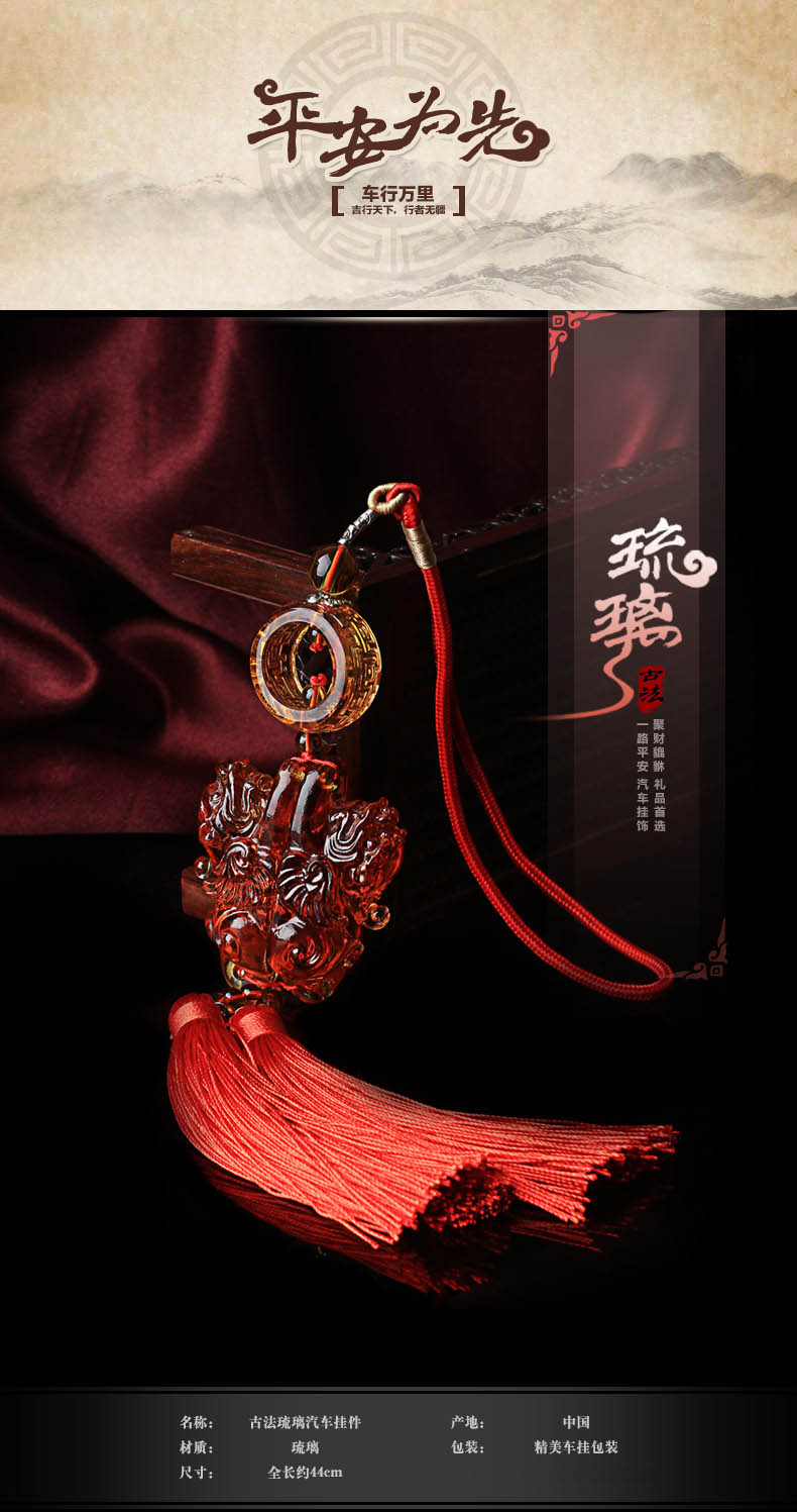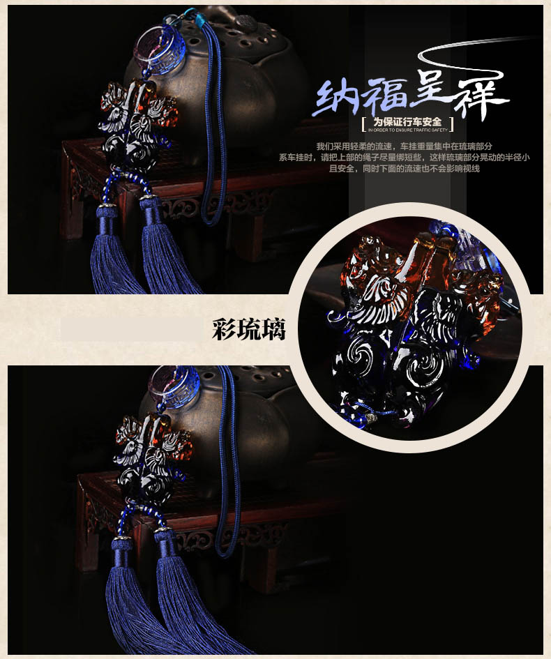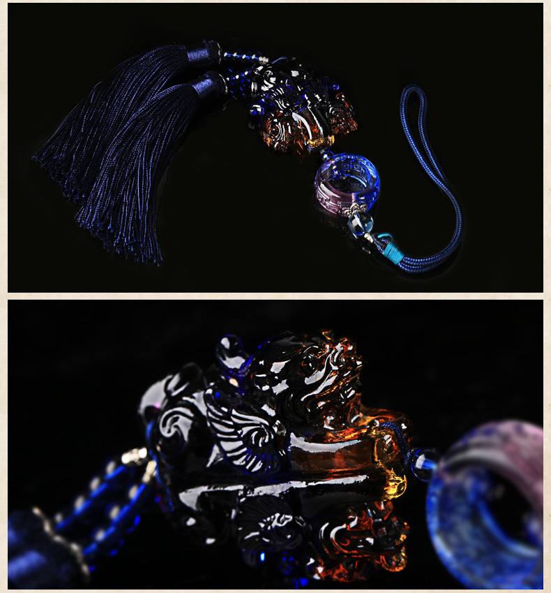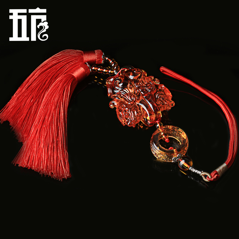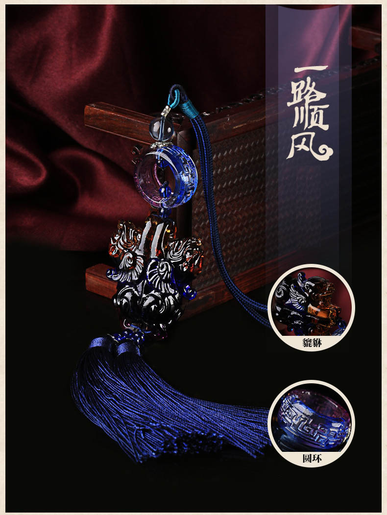 古法琉雌雄对璃貔貅汽车挂饰★琥珀彩色双皮休财源滚滚琉璃车挂
