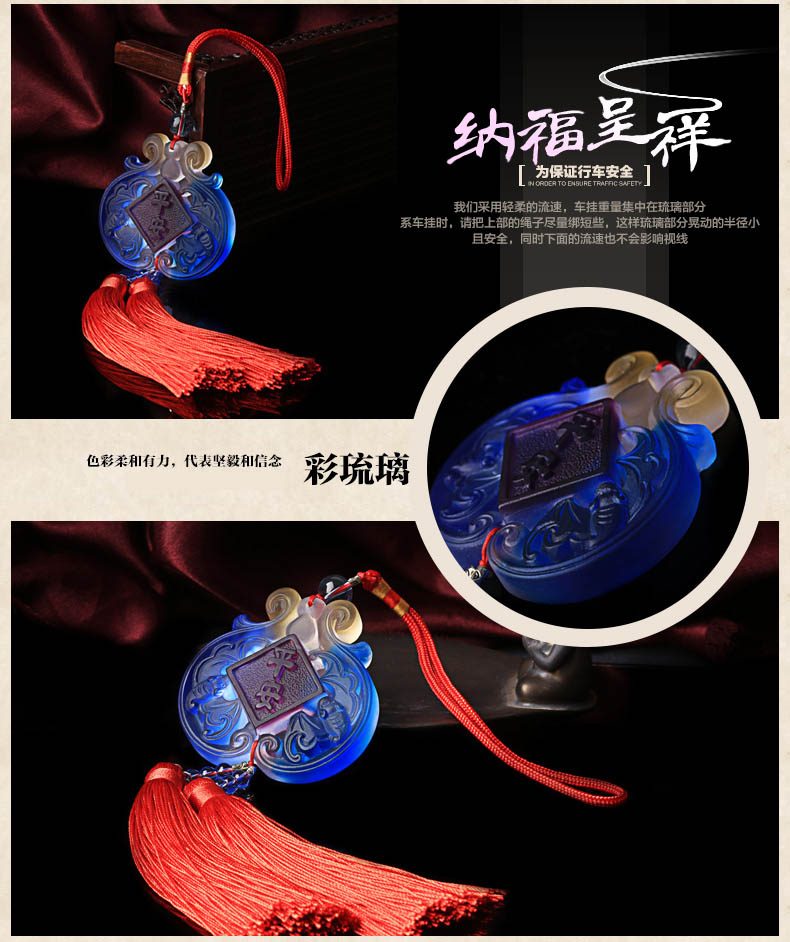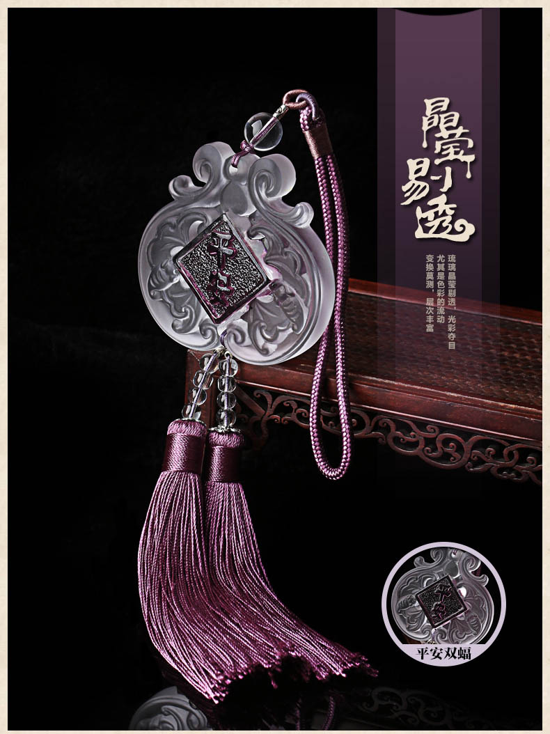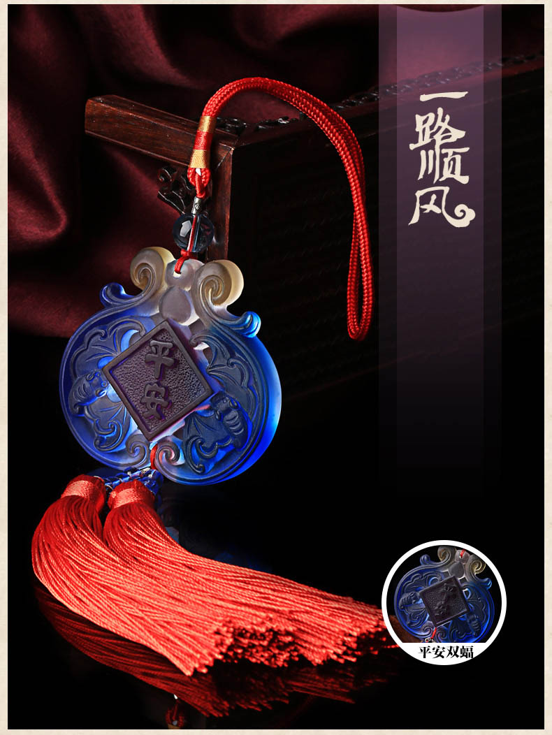 古法琉璃平安双福汽车挂饰★多色双蝠琉璃车挂