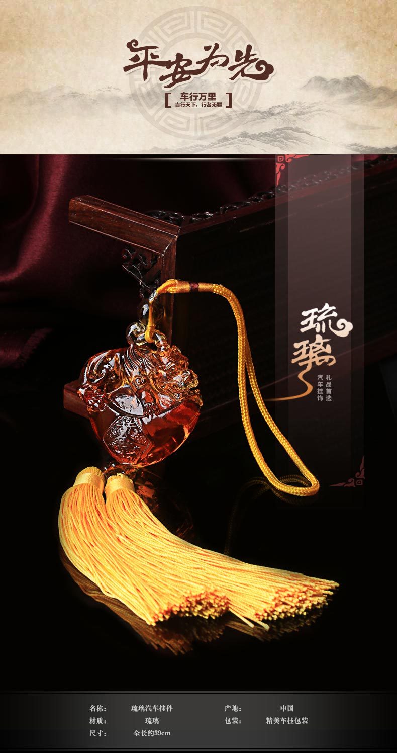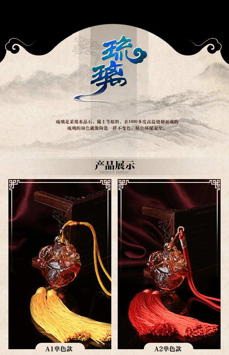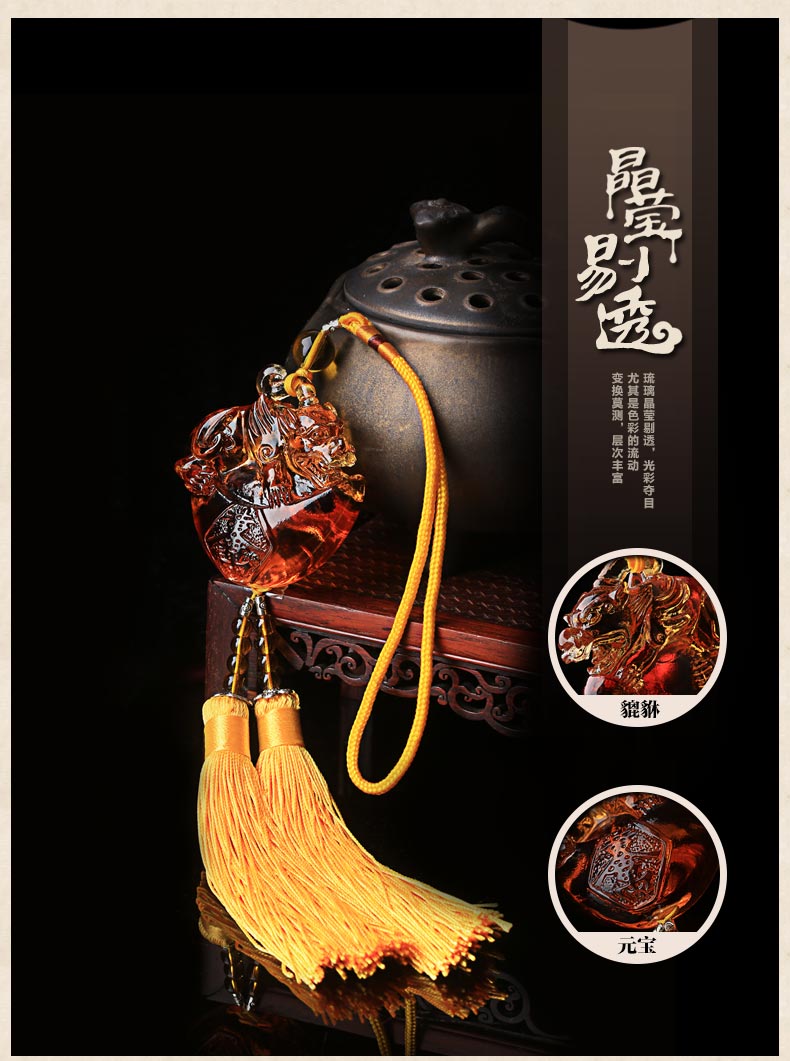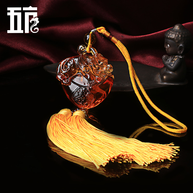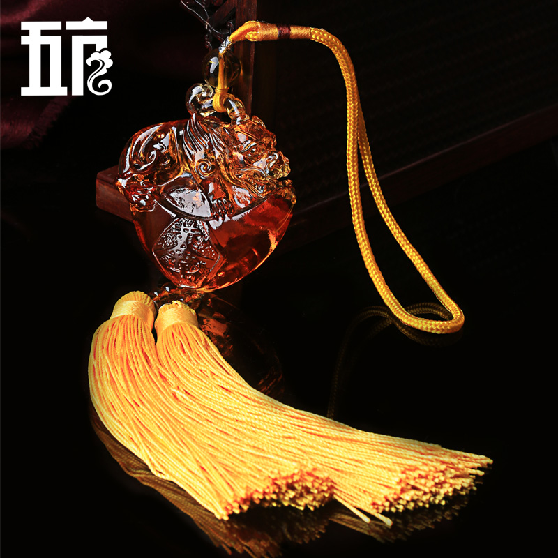 古法琉璃元宝貔貅汽车挂饰★多彩琉璃元宝貔貅车挂
