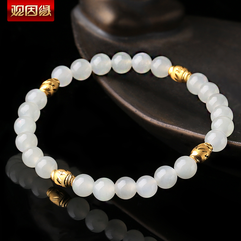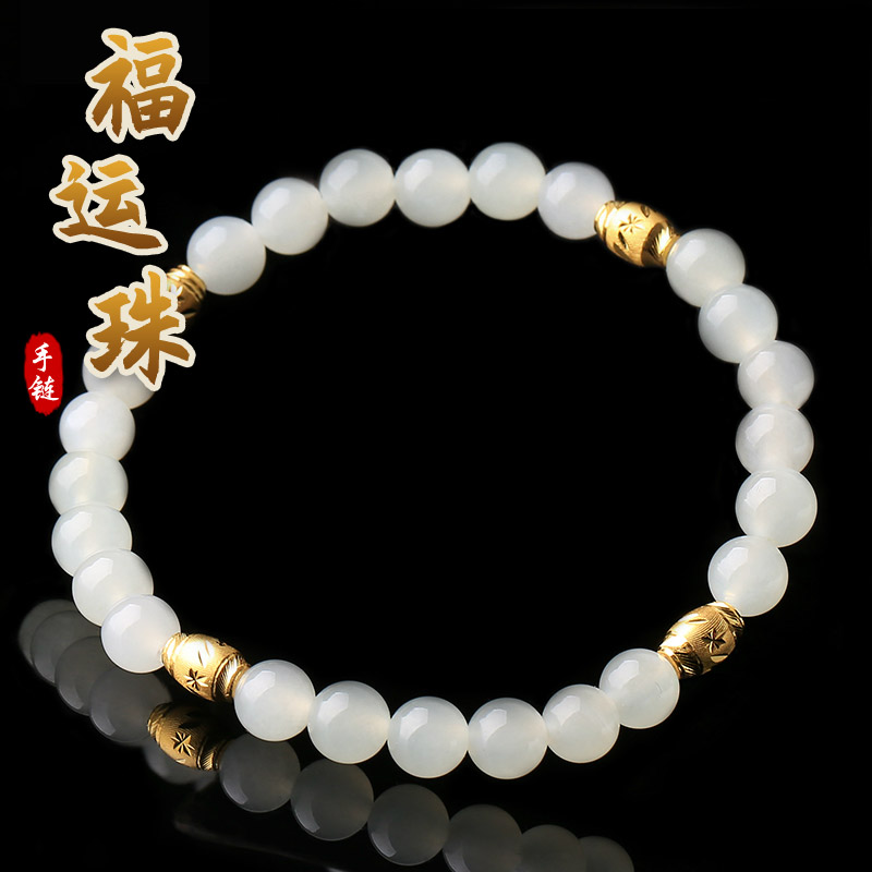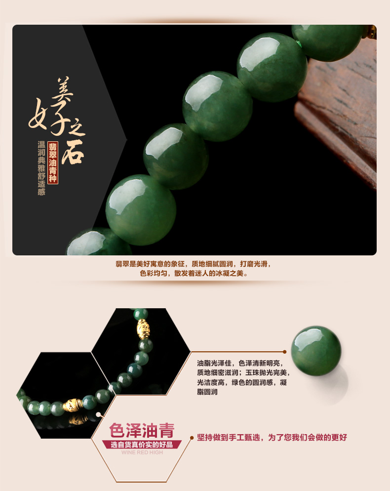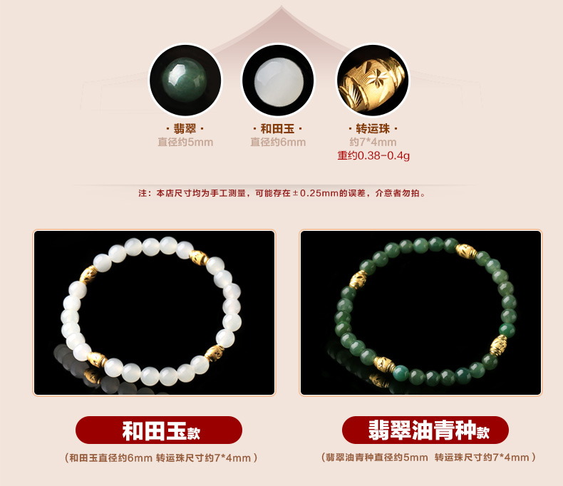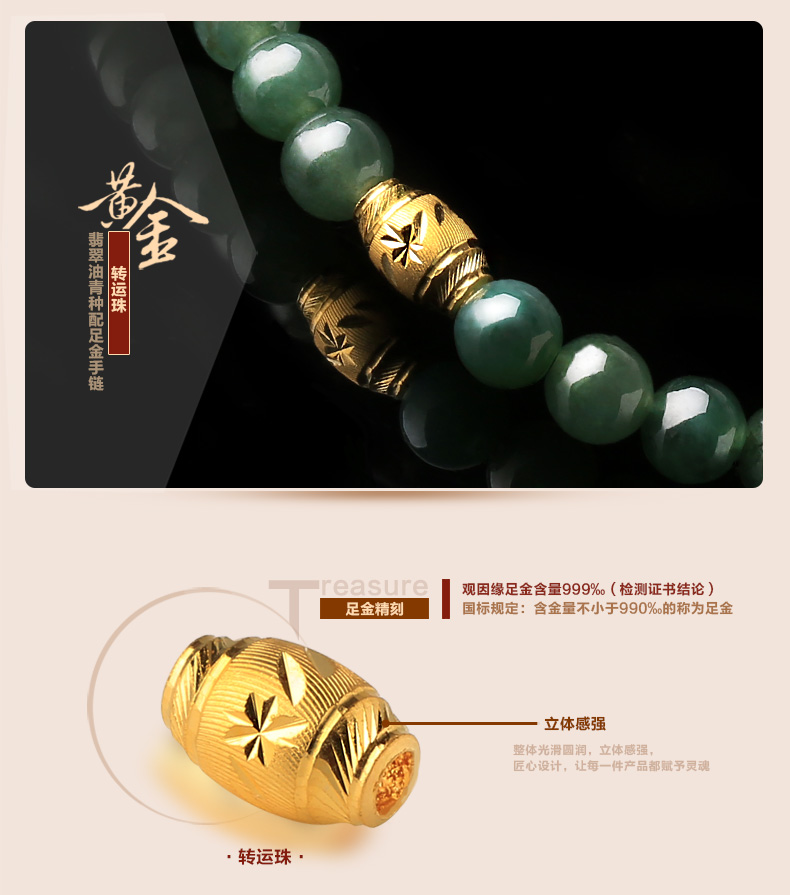 黄金足金3D硬金和田玉单圈手链★翡翠配黄金转运珠单圈手串★流行饰品