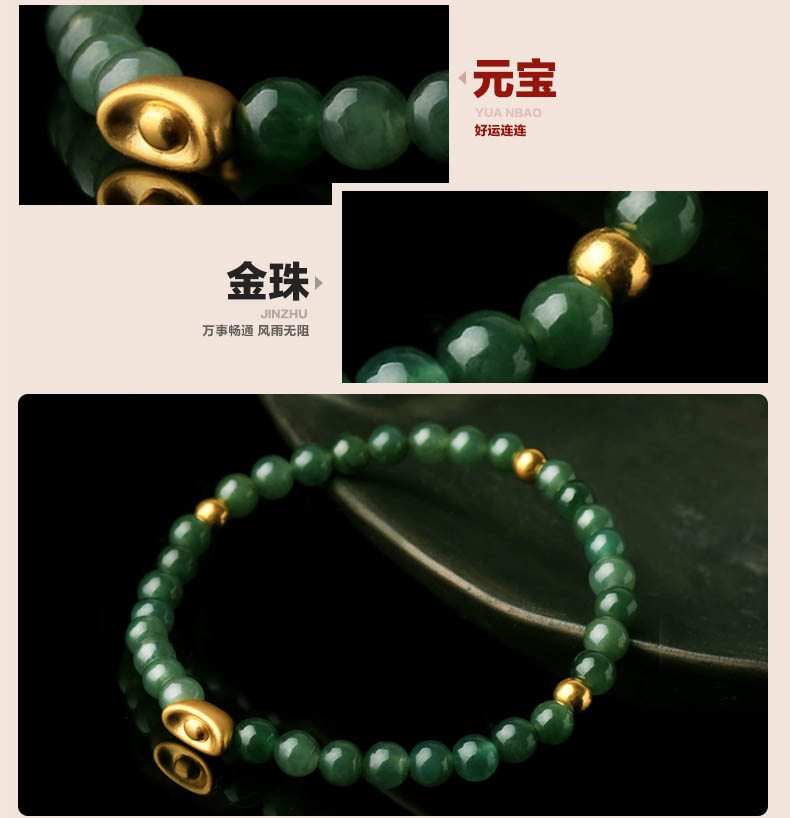 黄金元宝翡翠单圈手链
