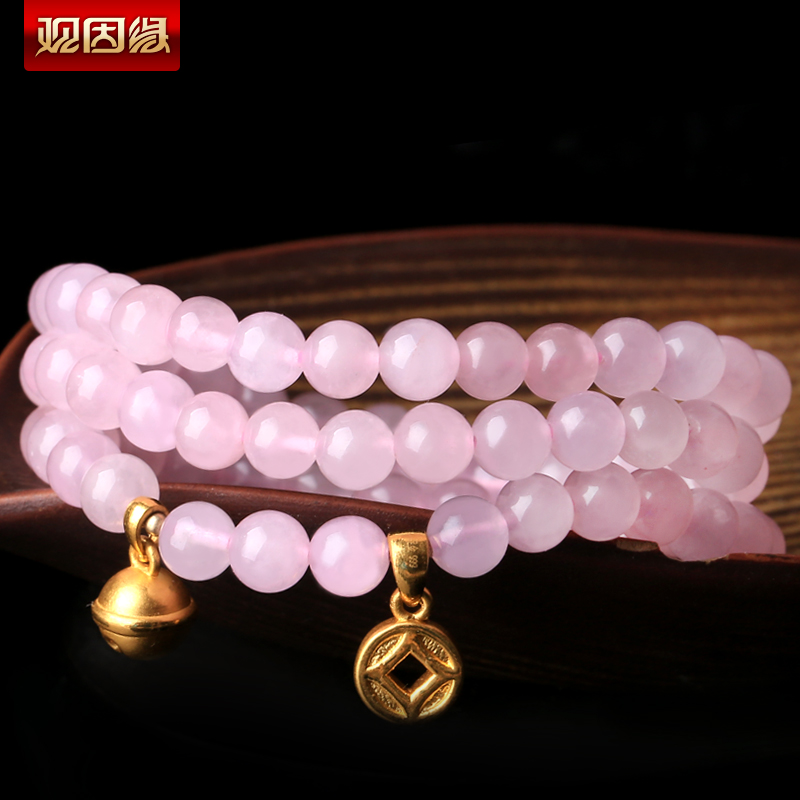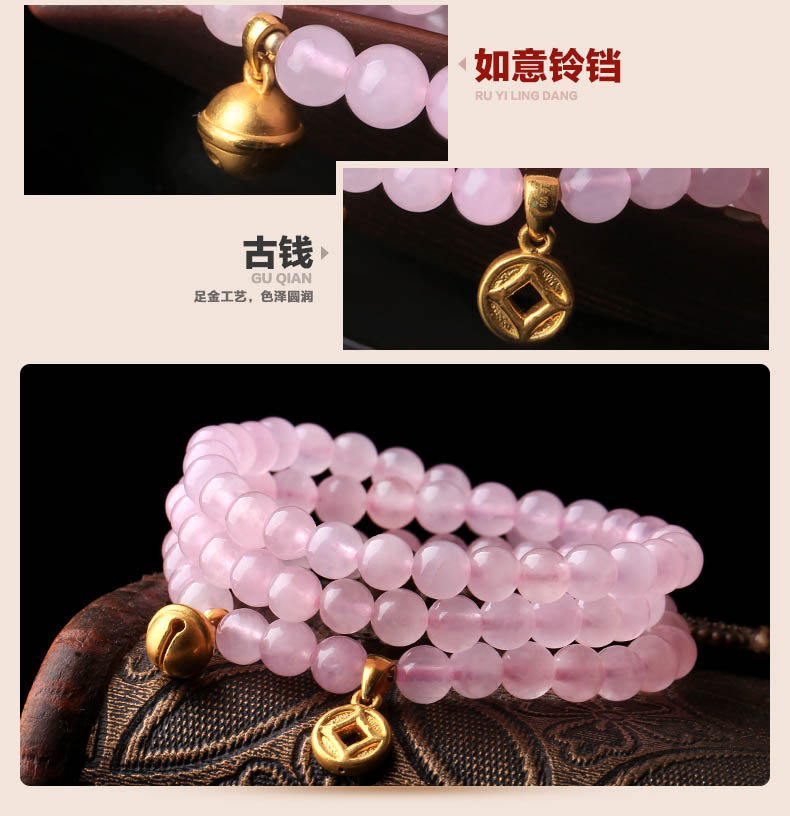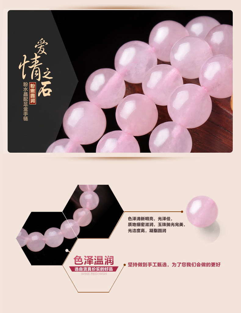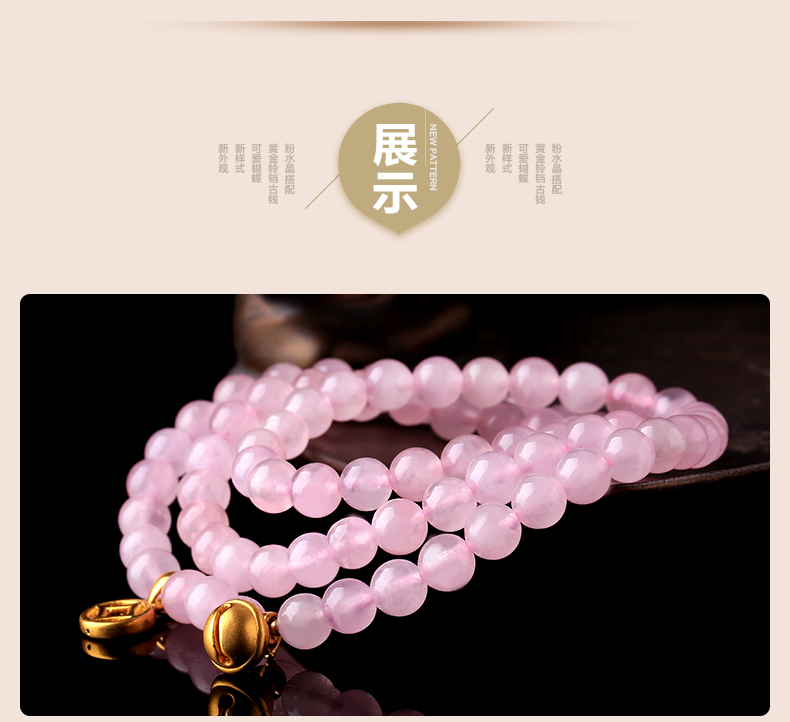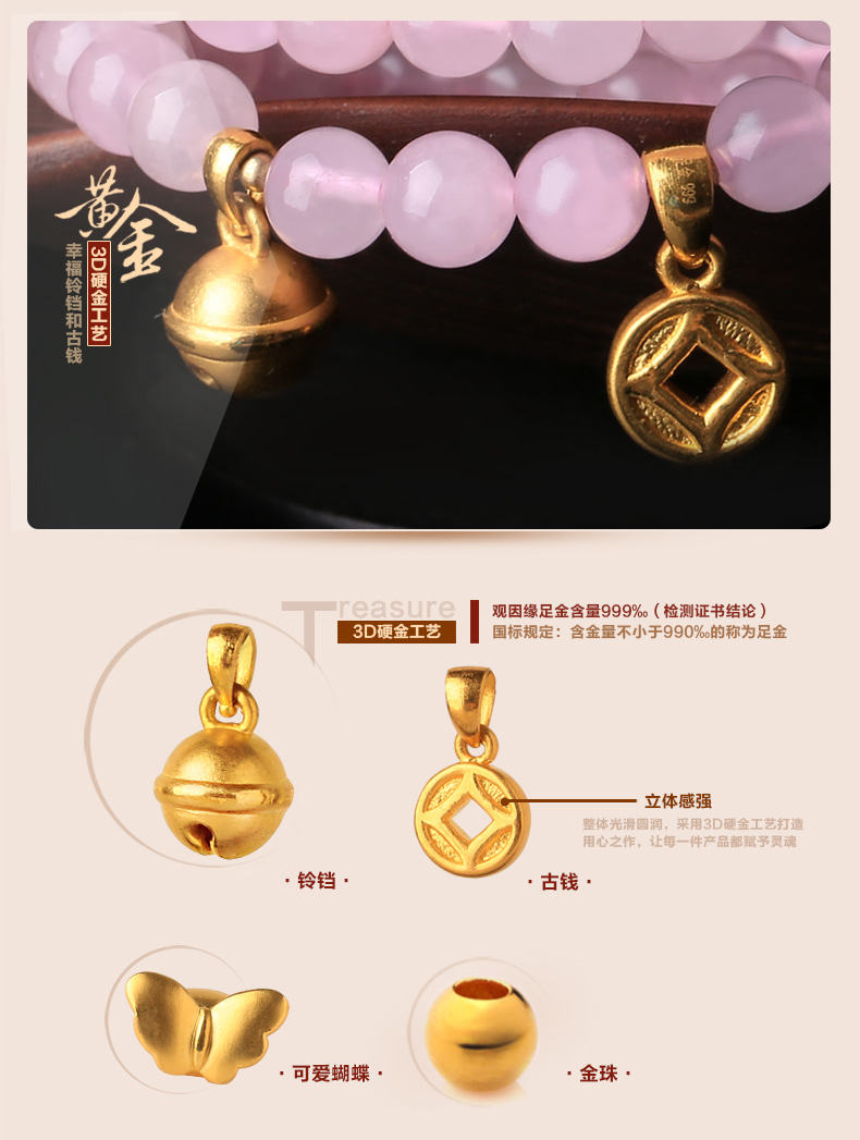 粉水晶配黄金足金3D硬金多种配饰手链★天然粉水晶单圈多圈手串★流行时尚