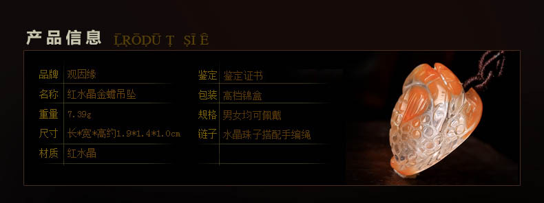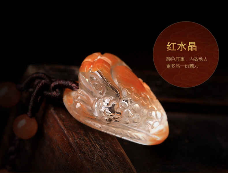 天然红水晶金蟾吊坠