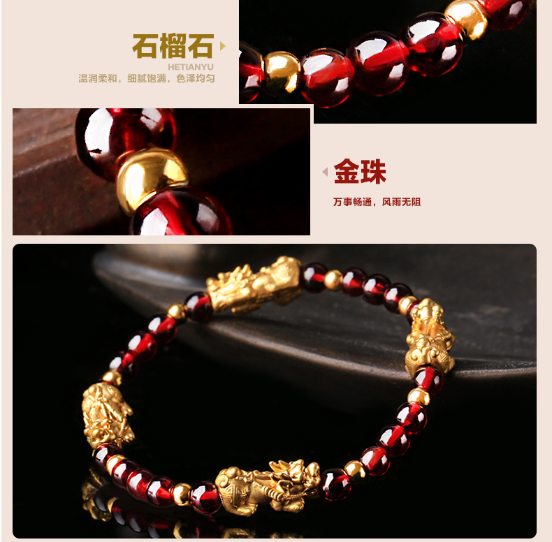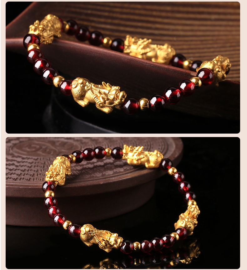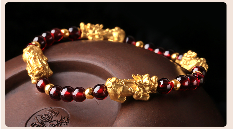 黄金石榴石貔貅手链