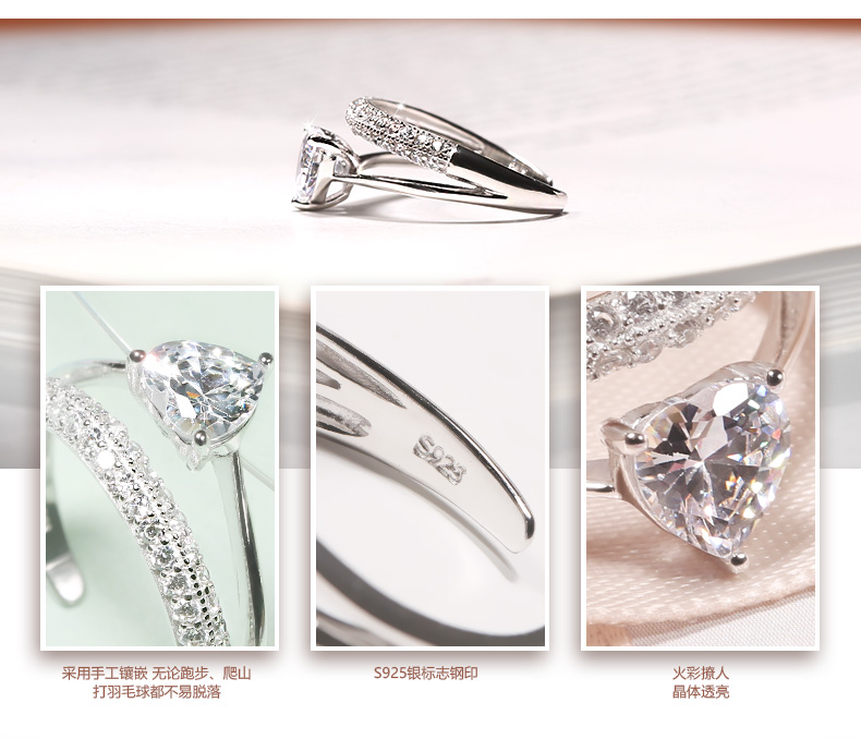 925银镶嵌,持久透亮,佩戴更放心,贴心舒适,戒面圆润饱满,玉质细腻温润,镶有精美锆石,光彩夺目,戒指整体轮廓清晰,线条流畅,品质高档,适合各年龄层次的人佩戴,自戴送礼皆宜。