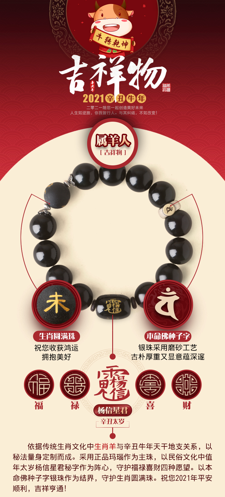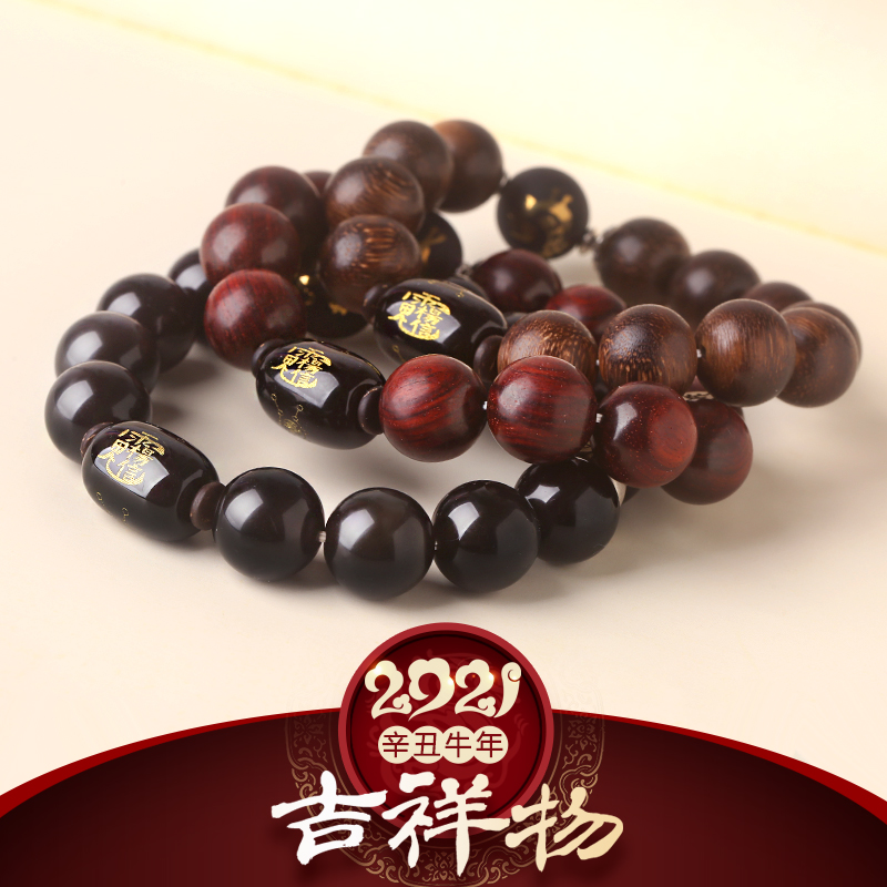 属羊人2021牛年生肖吉祥物★太岁杨信星君手链男款★黑曜石紫檀木沉香木可选