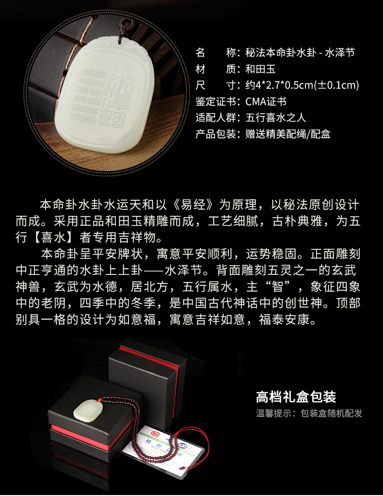 新款秘法本命卦水卦和田玉吊坠★水运天和项链吊坠★五行喜水专用吉祥物