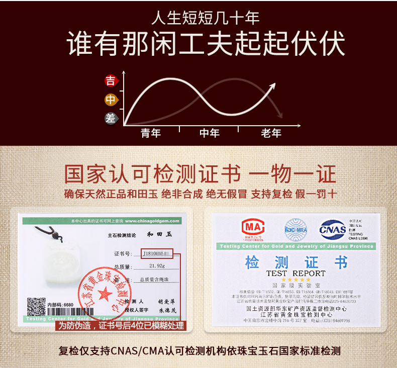 标明含鉴定证书的圣品免费赠送CMA/CNAS认可的鉴定证书。