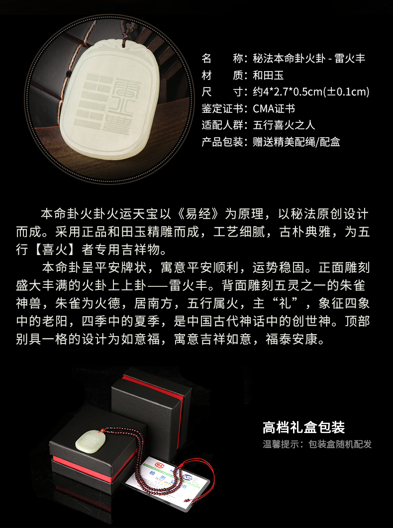 新款秘法本命卦火卦和田玉吊坠★火运天宝项链吊坠★五行喜火专用吉祥物