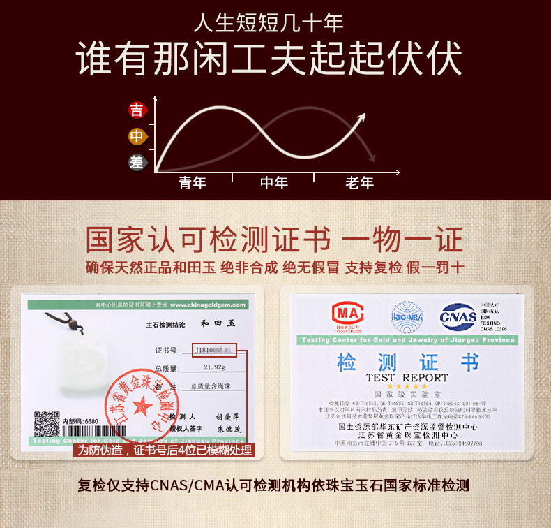 标明含鉴定证书的圣品免费赠送CMA/CNAS认可的鉴定证书。