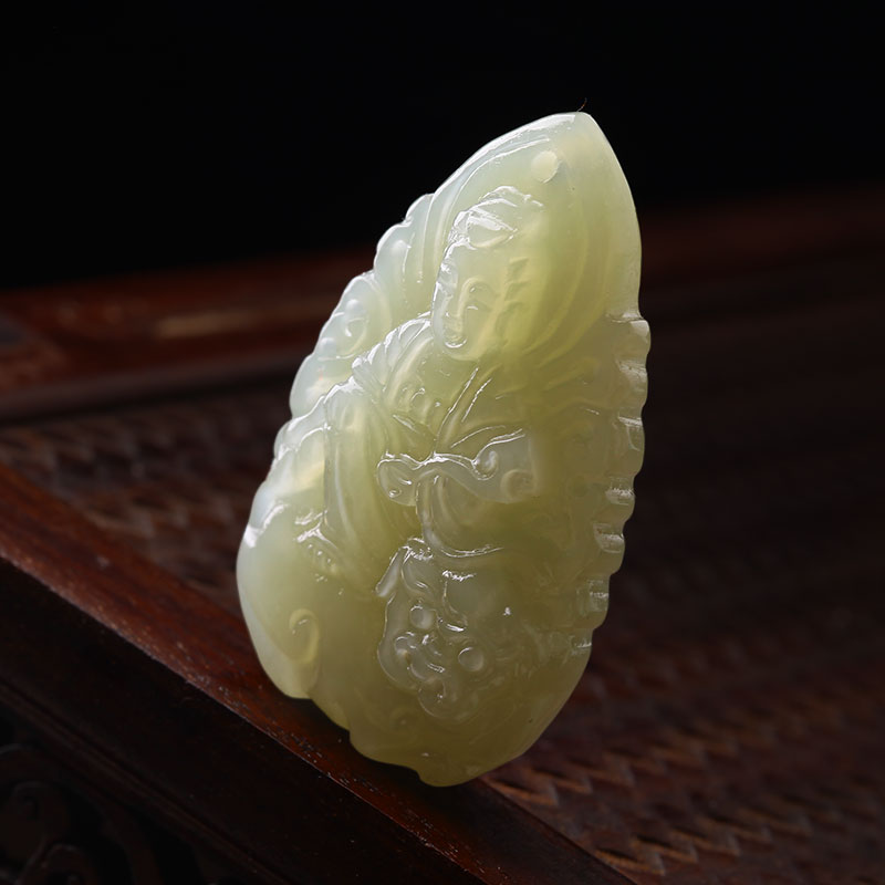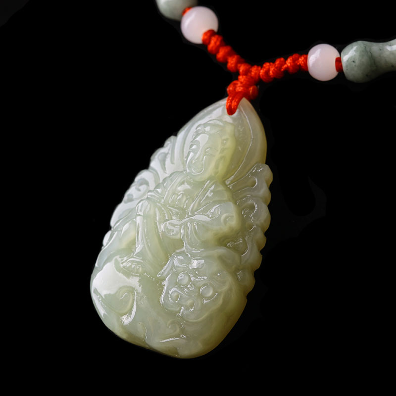 属兔人本命佛文殊菩萨吊坠★经典款棕色绳红色绳★和田玉浅黄玉标准版