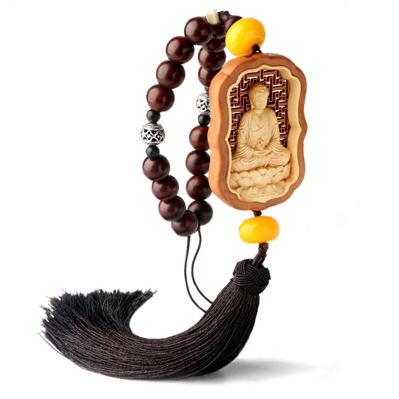 十二生肖属猪人本命佛阿弥陀佛黄杨木汽车挂饰宅挂★百解宝运葫芦车挂
