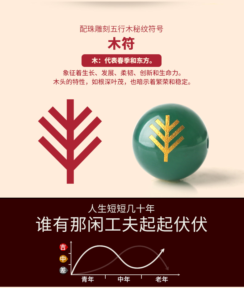 新款秘法本命卦木卦手绳绿玛瑙隔珠手链★木运天贵手绳主珠10mm★五行喜木专用吉祥物