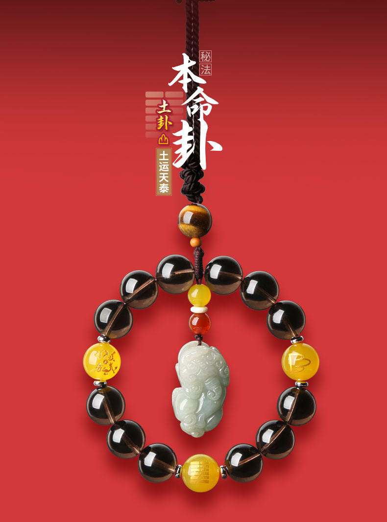 新款秘法本命卦土卦汽车挂件★茶晶黄玛瑙土运天泰翡翠貔貅车饰★五行喜土专用吉祥物
