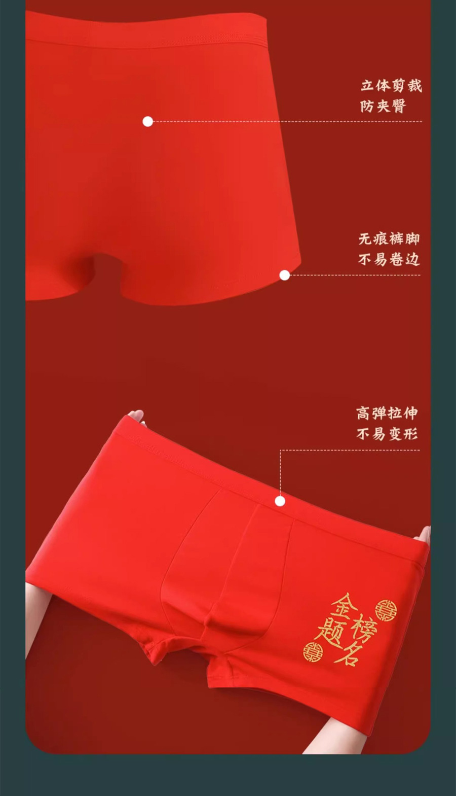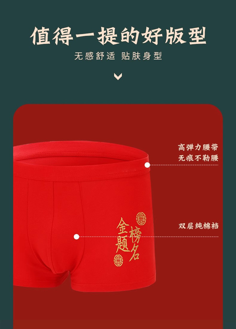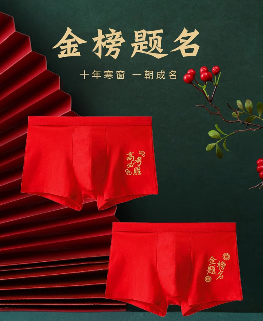 高考中考状元金榜题名内裤★男士纯棉红内裤★文昌内衣