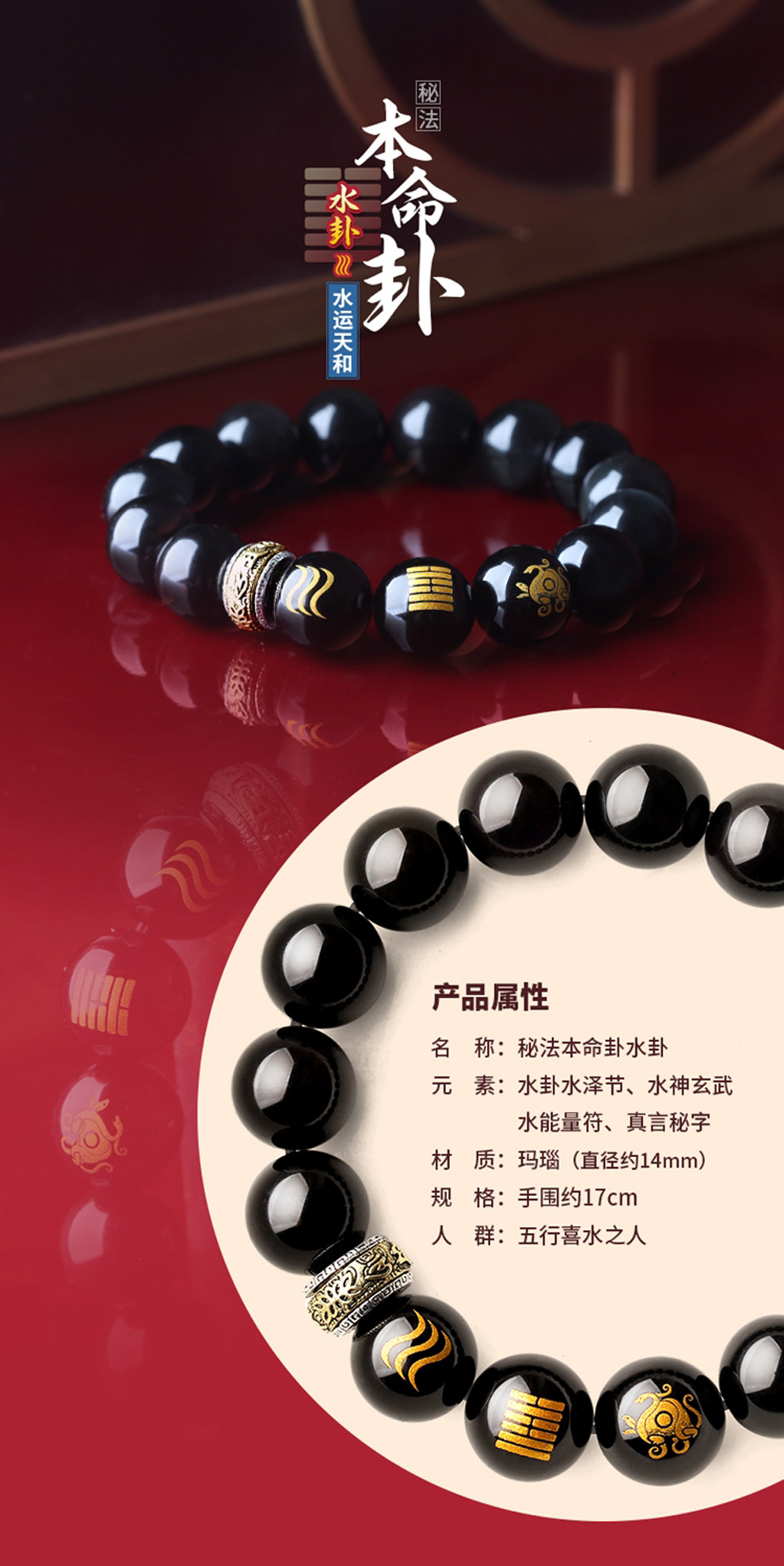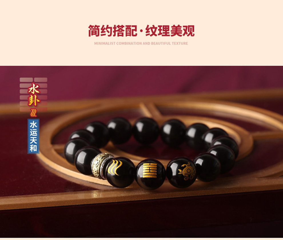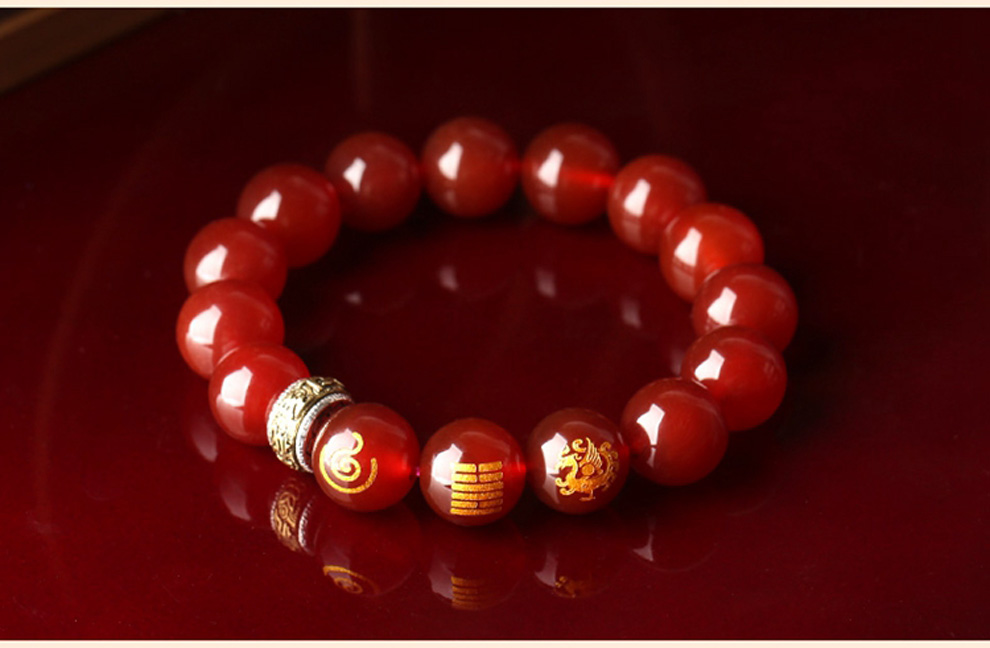 新款秘法五行本命卦玛瑙14mm男款手链★五行吉祥物手链5条套装