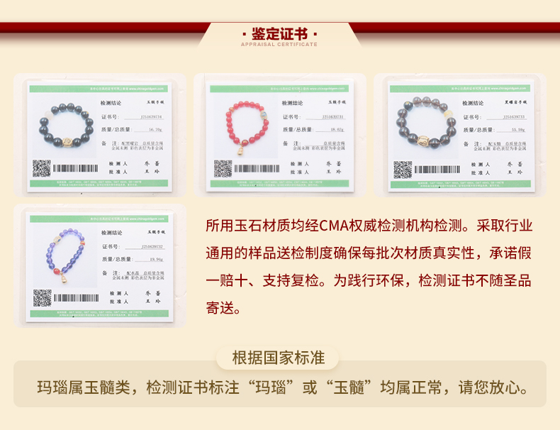 ![]() 标明含鉴定证书的圣品免费赠送CMA/CNAS认可的鉴定证书。 |