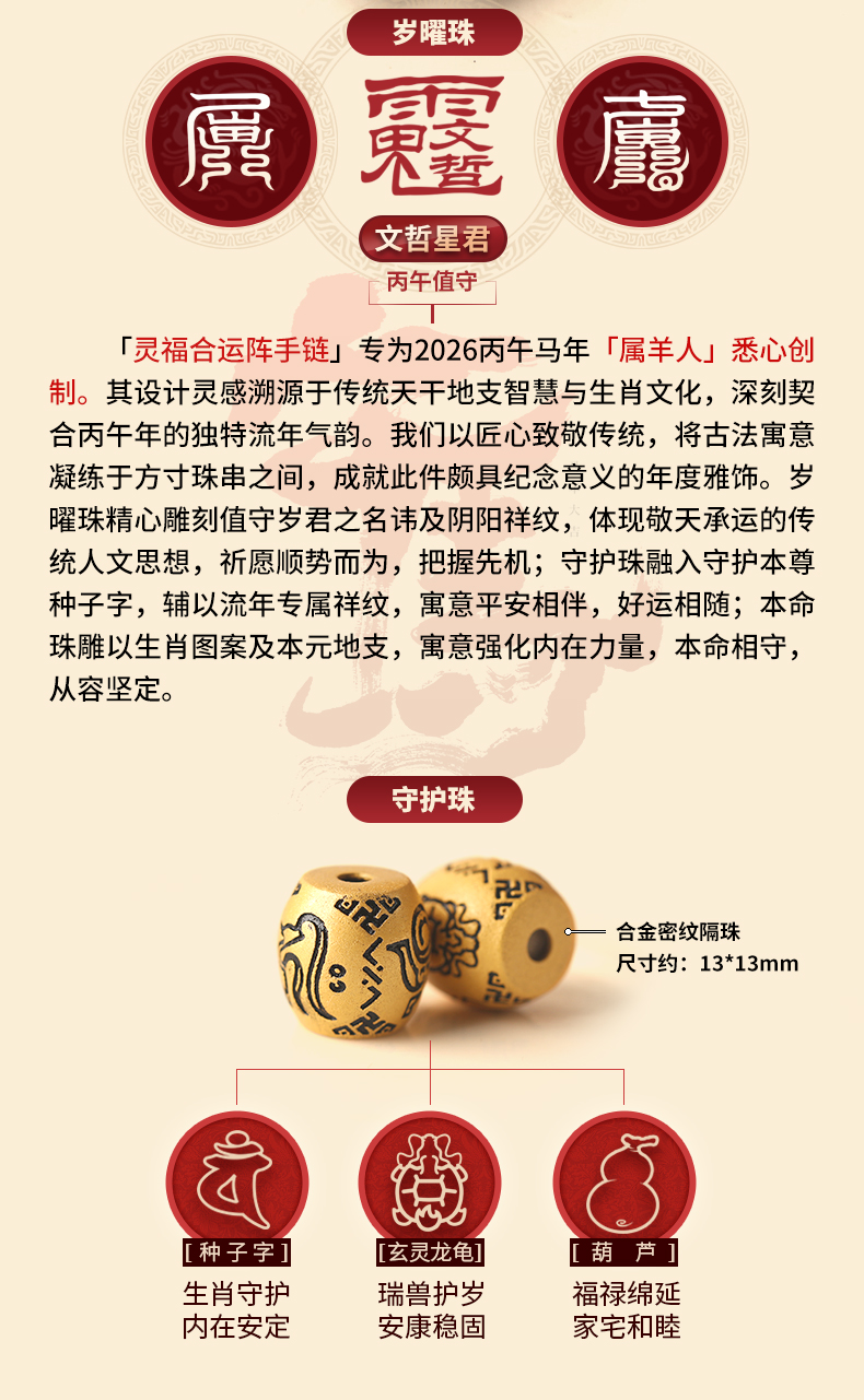 • 本命佛价格说明 2026年吉祥物手链 2026年新版三合化太岁锦囊 新七星九运过门垫 2025年新品本命卦手链