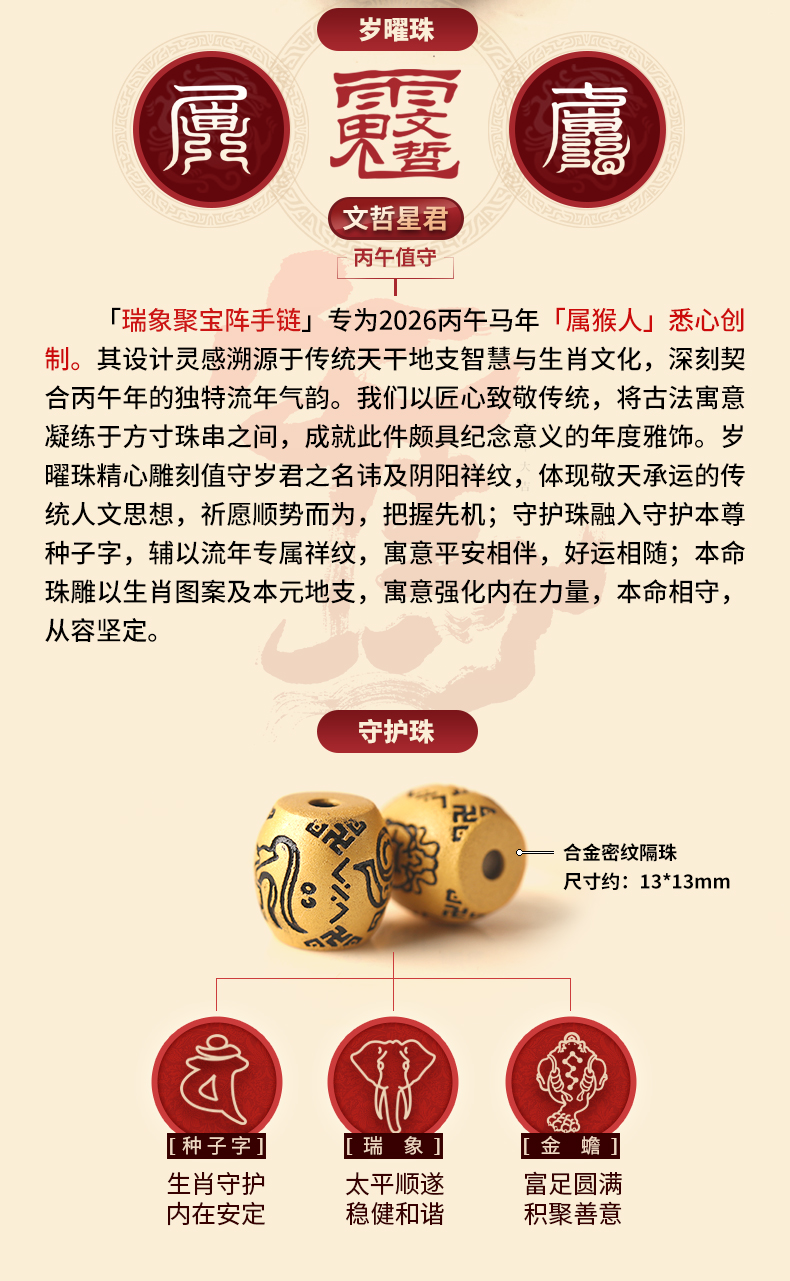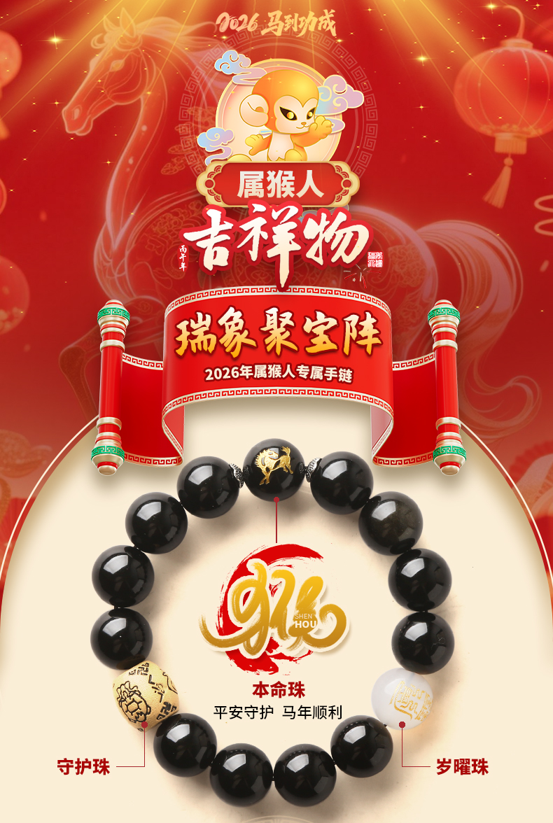 属猴人2026年马年生肖吉祥物手链男款★瑞象聚宝阵★玛瑙黑曜石沉香紫檀木多款本命年犯太岁